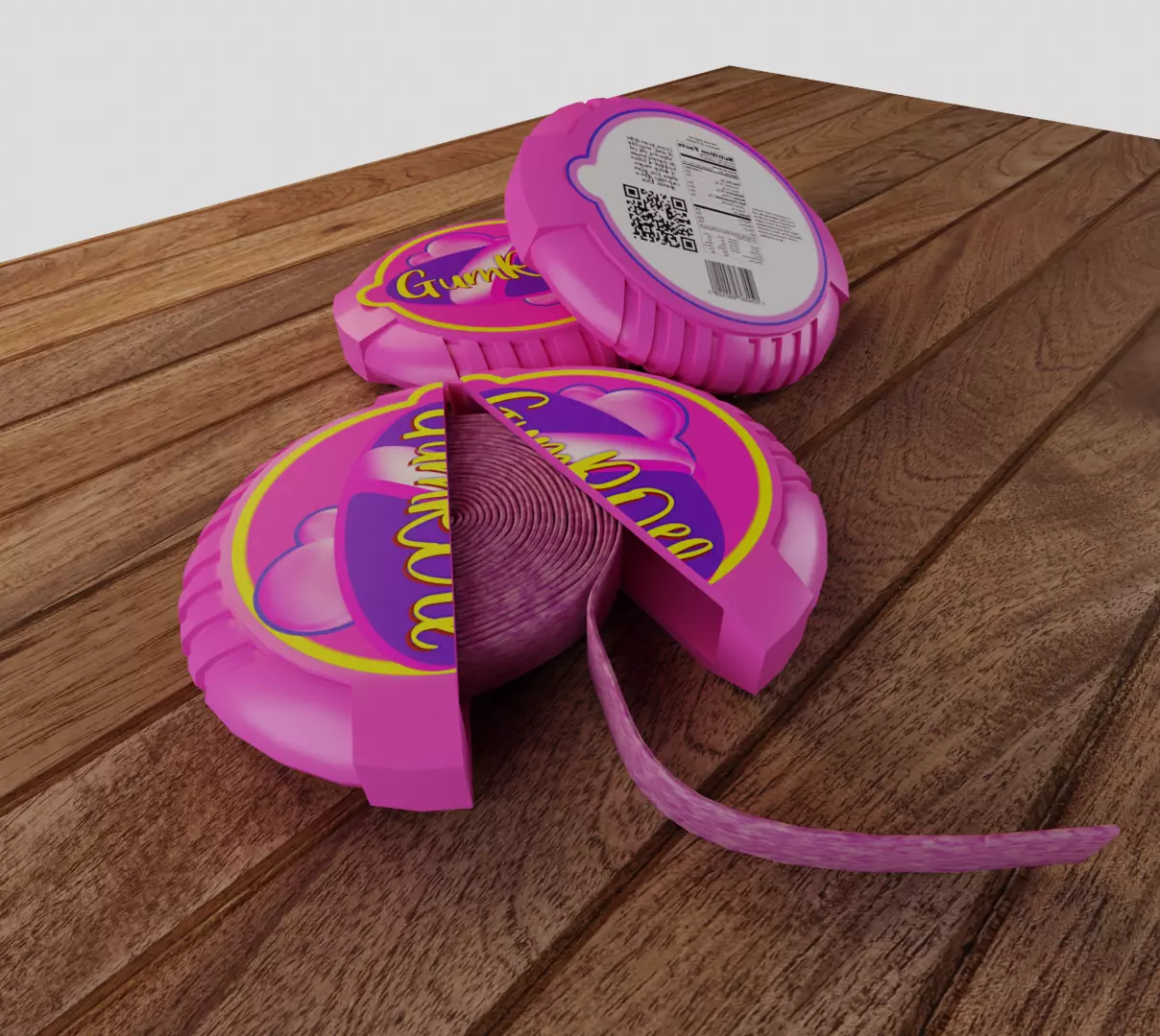 4. Scene Native .blend triangulation ready mesh Scene thumbnail triangulation ready mesh, procedural materials Scene Extra excene with randomizer for colors in the nodes Universal Baked materials for the gum, stable and ready to export materials for the rest