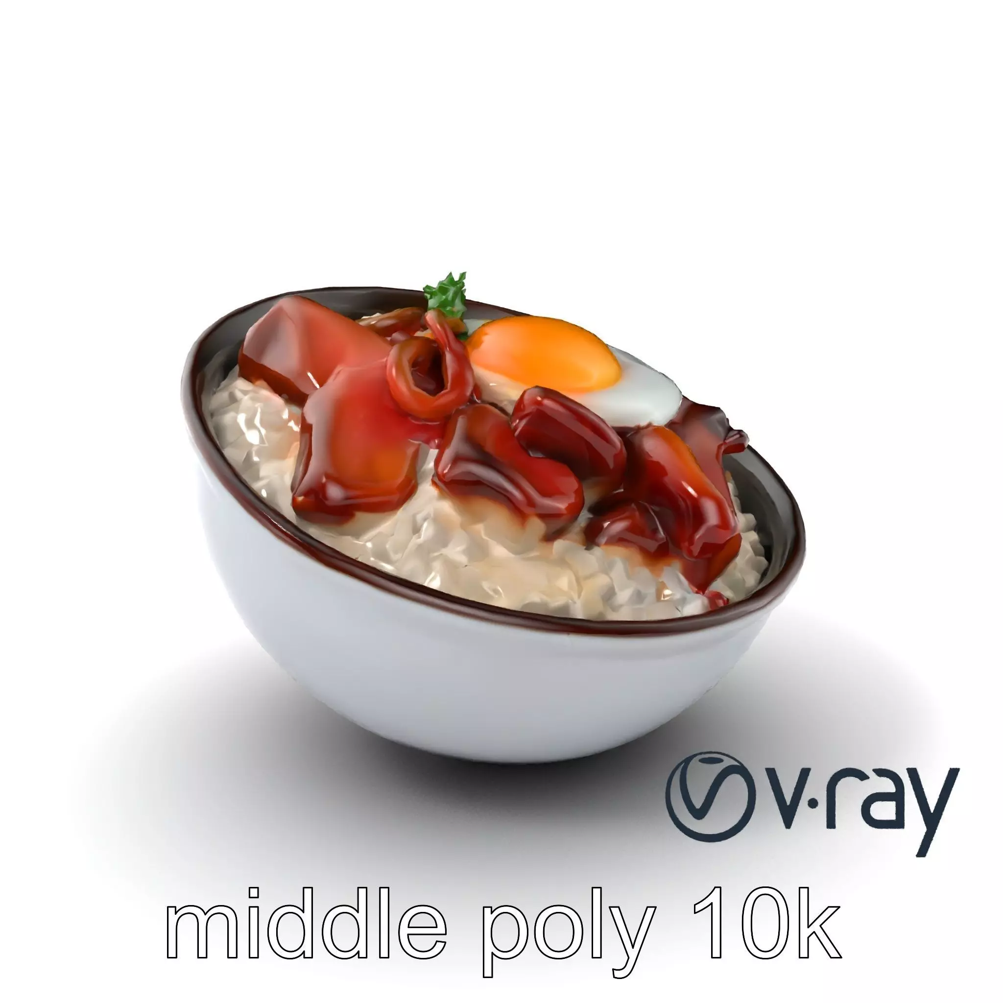 This Gyudon Beef Bowl model is ideal for culinary visualizations, restaurant menus, and cooking game simulations, showcasing a delectable combination of simmered onions, savory beef slices, and a raw egg yolk atop steamed rice.