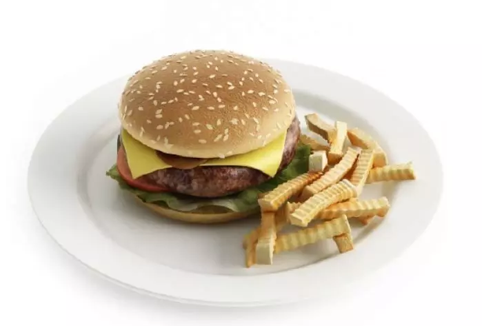 HAMBURGER 3D MODEL with fries on plate Low-poly 3D model