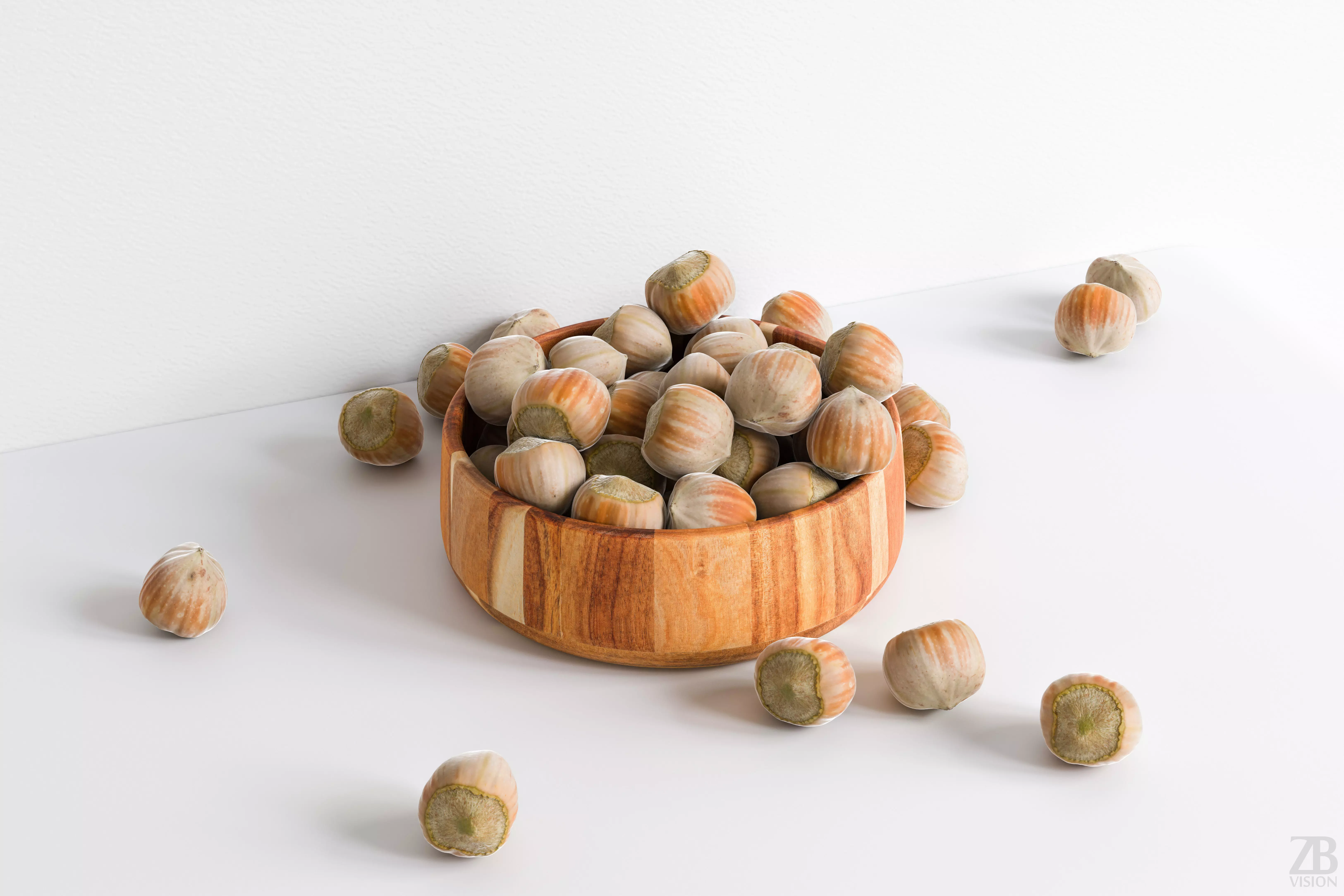 This is a 3D model of a fresh hazelnut. It was scanned and prepared for photorealistic renderings, close-ups, stills, and animation. The hazelnut model is ready to be inserted into your scene out of the box.
