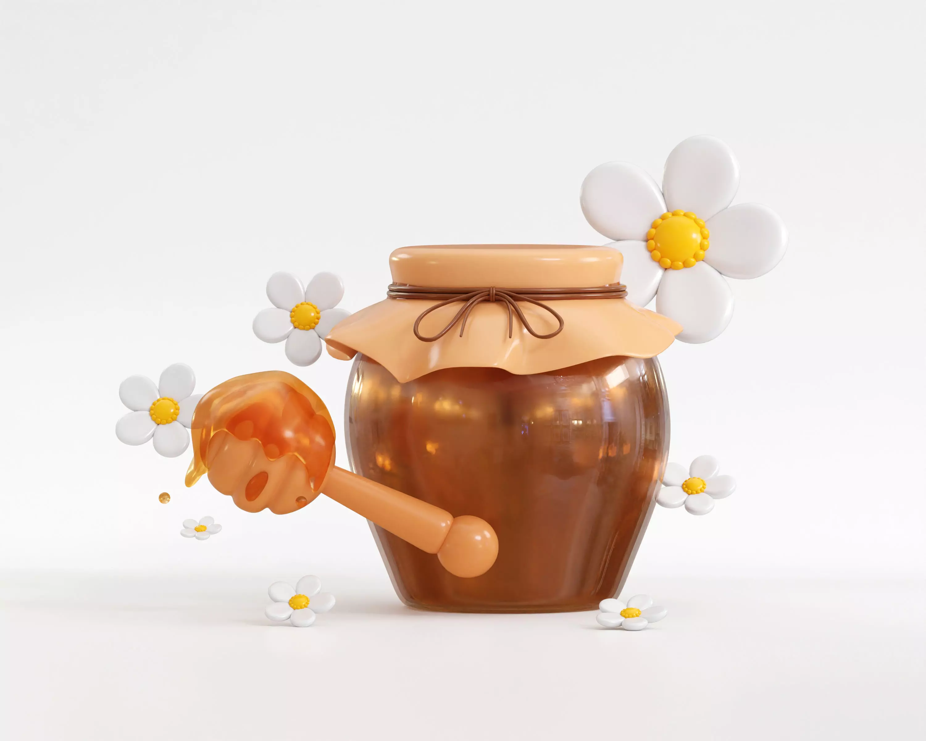 Highly detailed model of a modern Honey dripping from dipper sticks with jar.