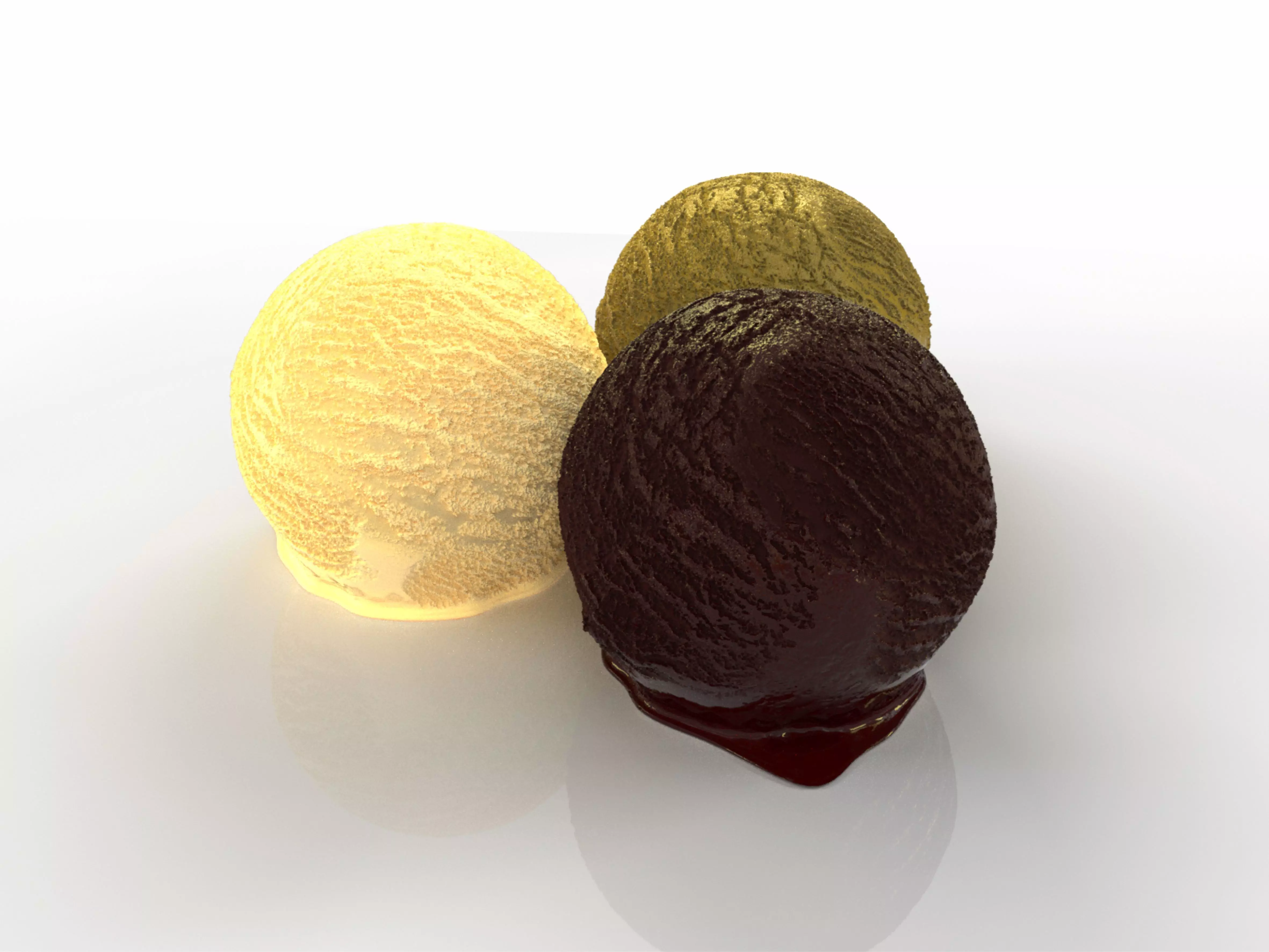 Perfectly scooped balls of fluffy ice-cream with melty bits. Gradient driven diffuse colors for infinite flavor options. Perfect for virtual food photography