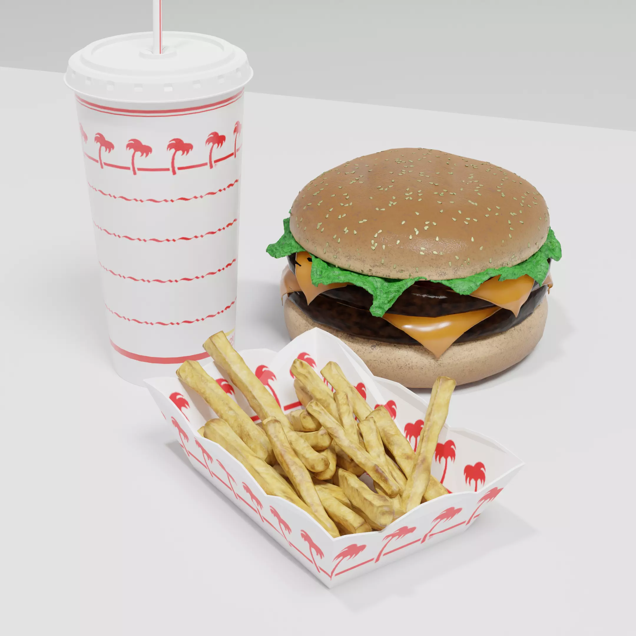 The model has material settings that define how surfaces look (color, shine, transparency, etc.).