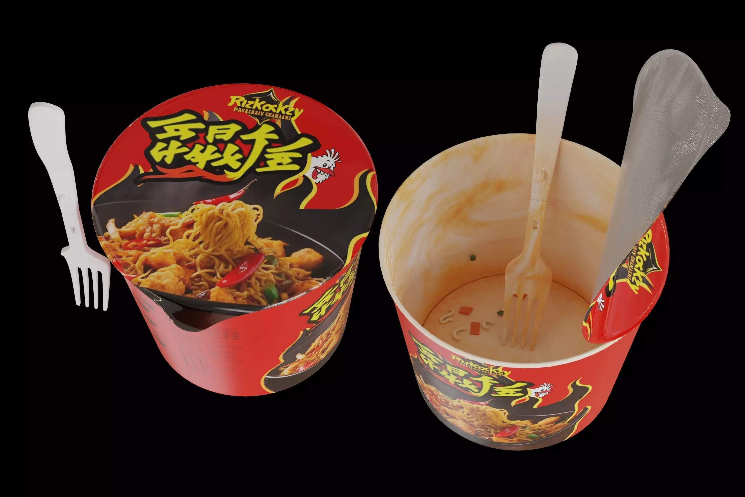 Instant Spicy Noodles with a One-off Fork Low-poly 3D model