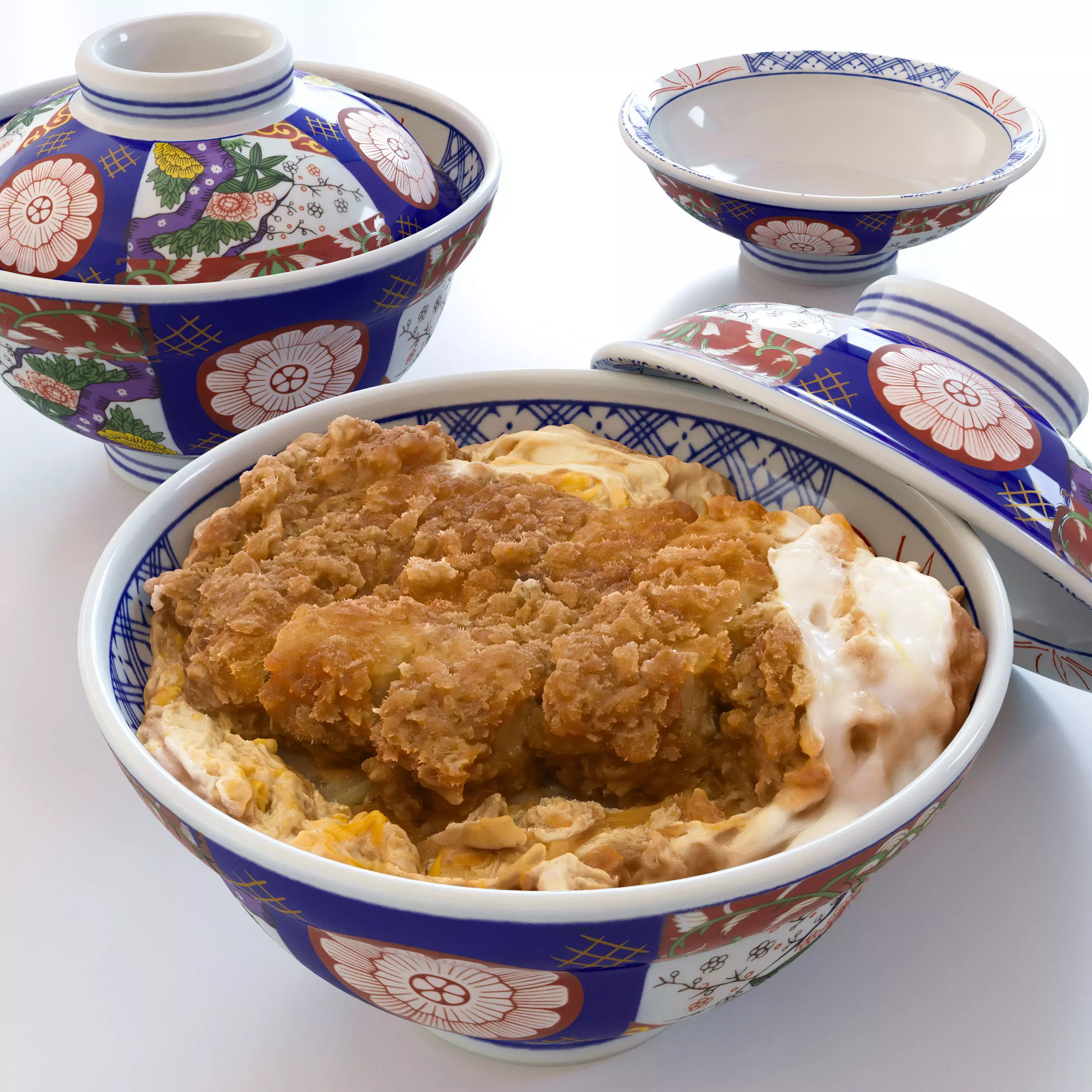 Katsudon and Donburi bowl with lid - Pork Cutlet Rice Bowl Low-poly 3D model