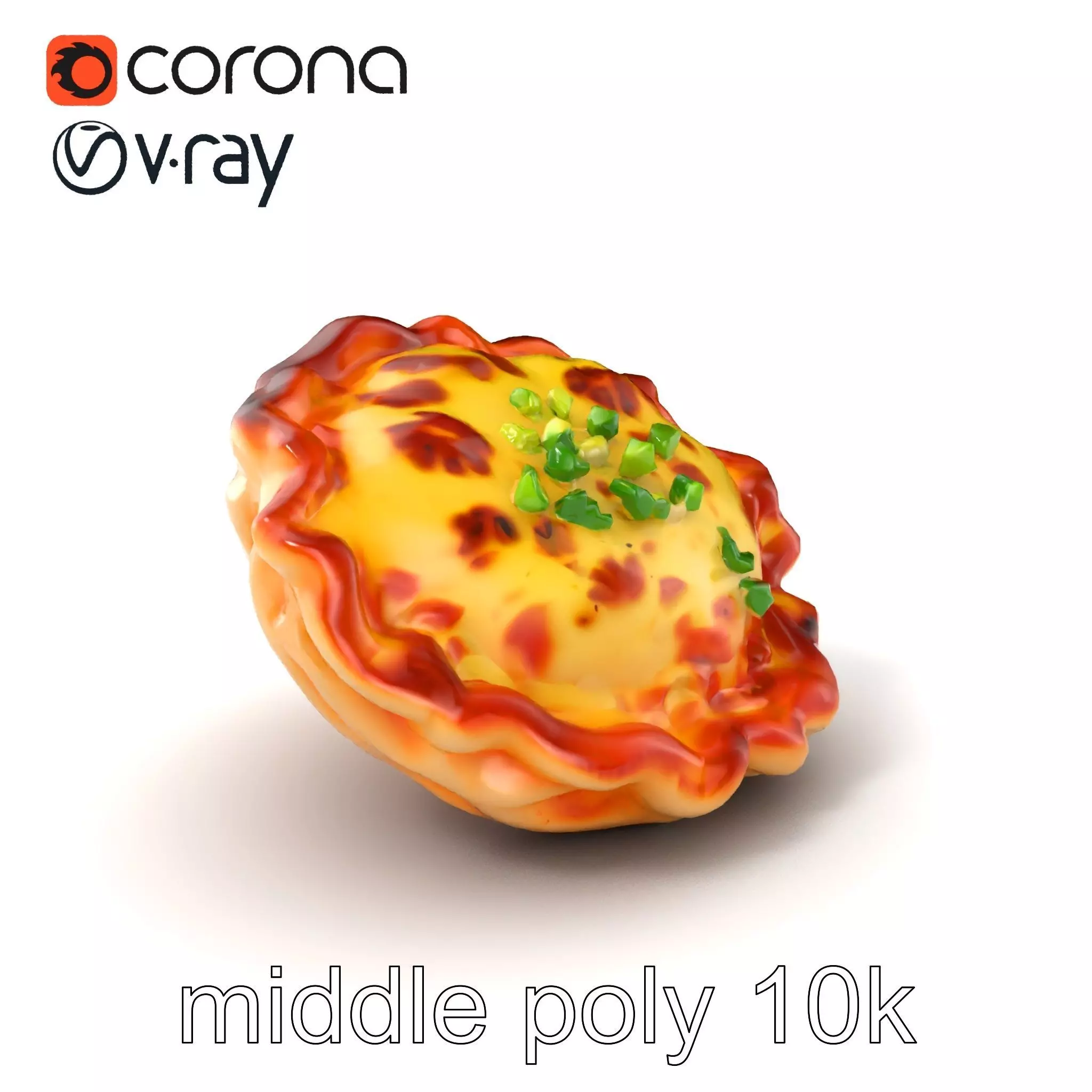 This model depicts a vivid Korean seafood pancake with crispy edges, seafood pieces, and green onion, capturing culinary authenticity. Perfect for food visualization, virtual menus, and culinary scenes in gaming.