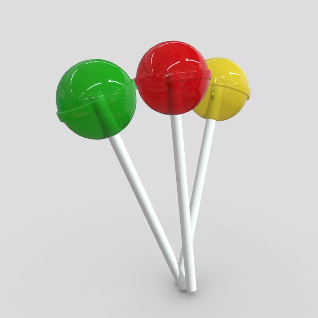 Lollipop three lollipops on stick Low-poly 3D model