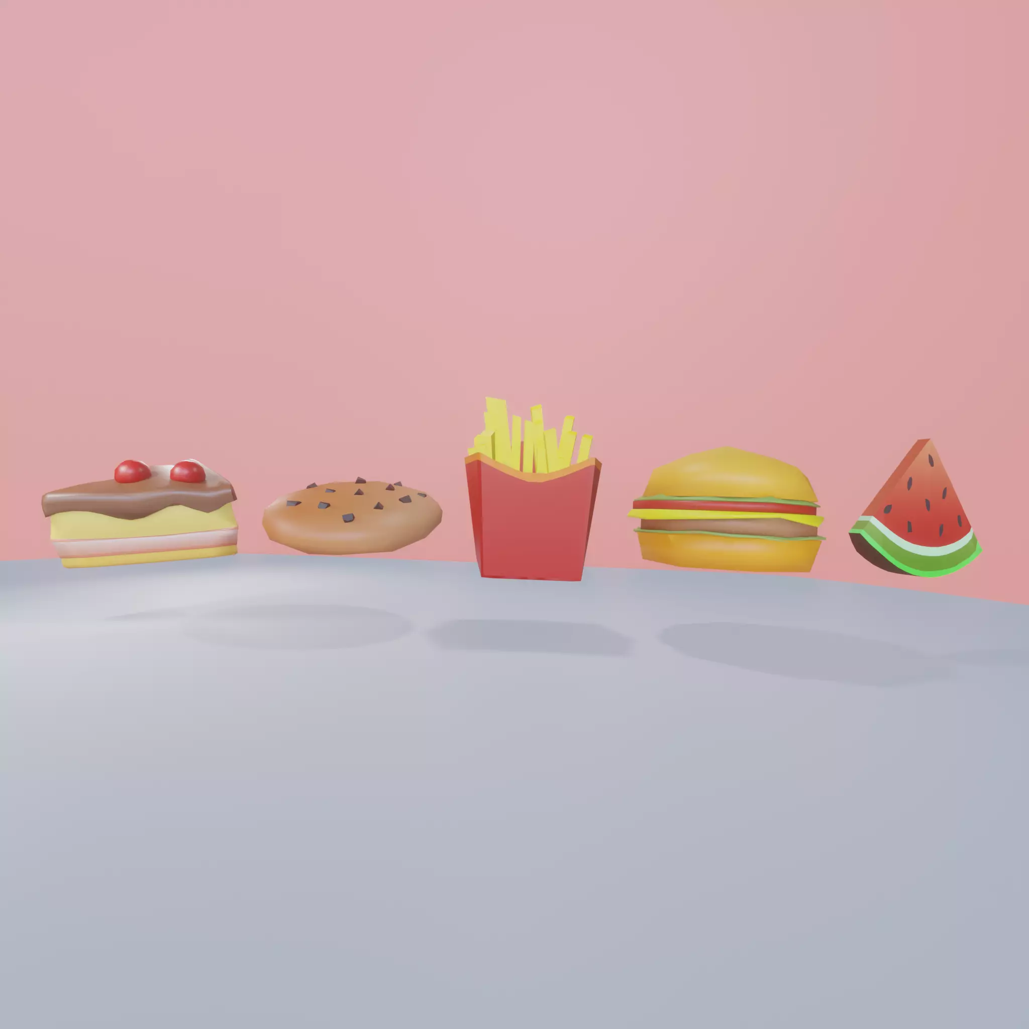 hypercasual foodshamburgerpizzacakefrieswatermelonthats all low poly for hypercasual games with color texturefbx files