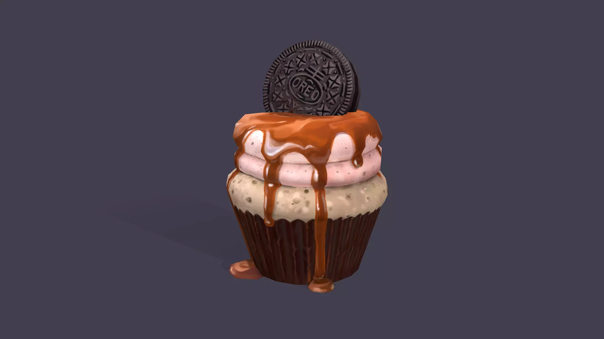 Low poly stylized handpainted muffin with oreo cookie Low-poly 3D model