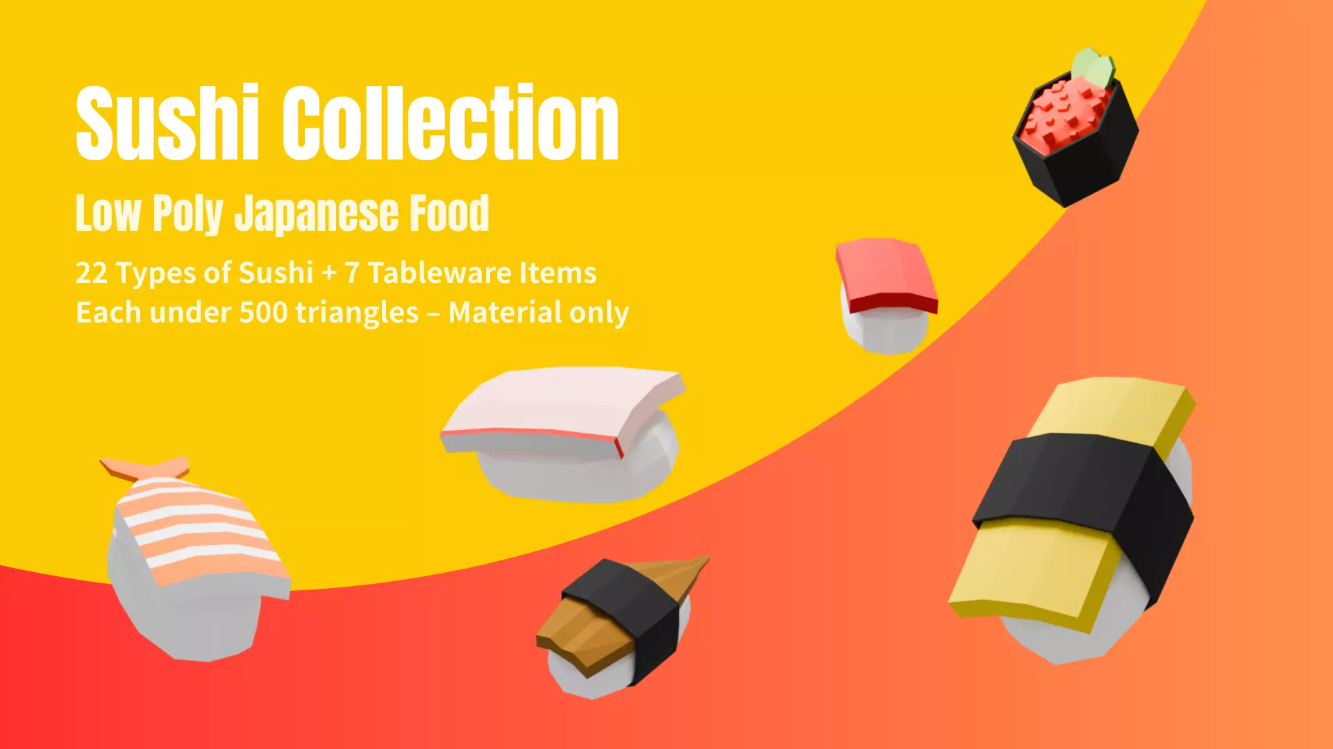 Low Poly Sushi Set – 29 Japanese Food 3D Models, Material Only, No Textures