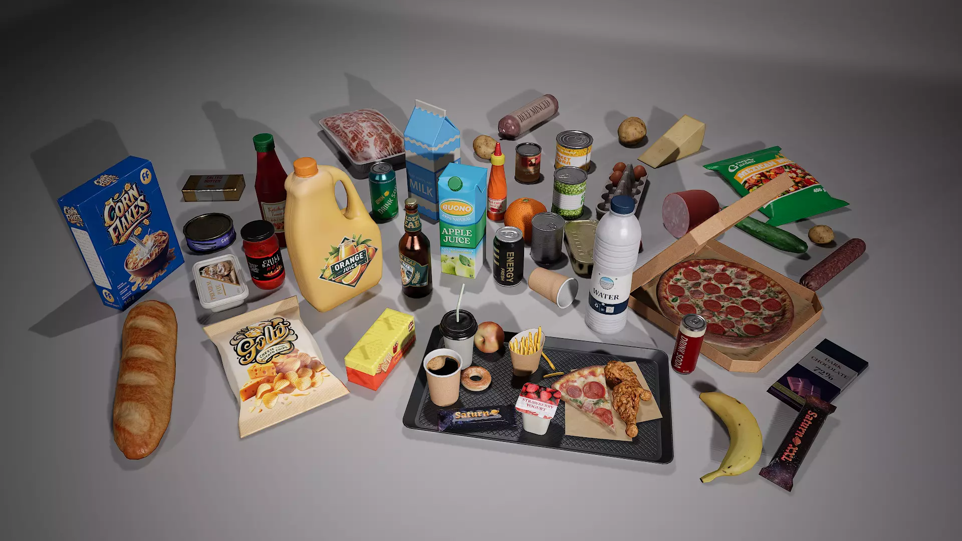 Miscellaneous food Full Pack Low-poly 3D model