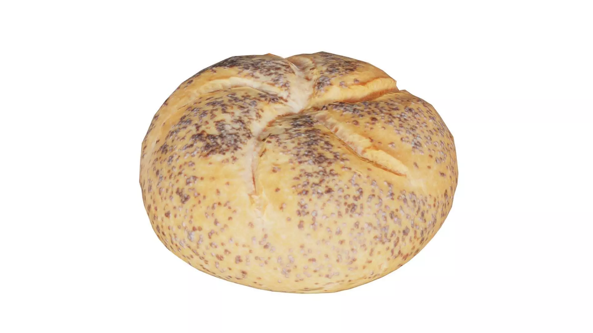 3D scanned model featuring a bread with seeds on it. This model, moon seed pistolet, has been created using photogrammetry from a real world object.The raw scan data has been cleaned, retopologized and UV-unwrapped using Zbrush. The result is a low poly mesh with baked maps. The .obj and .mtl are configured so that maps will load automatically in the shader (tested in Blender). In addition, a Blender scene is provided with the model and shader already set up for rendering and export. Detailed information below:
