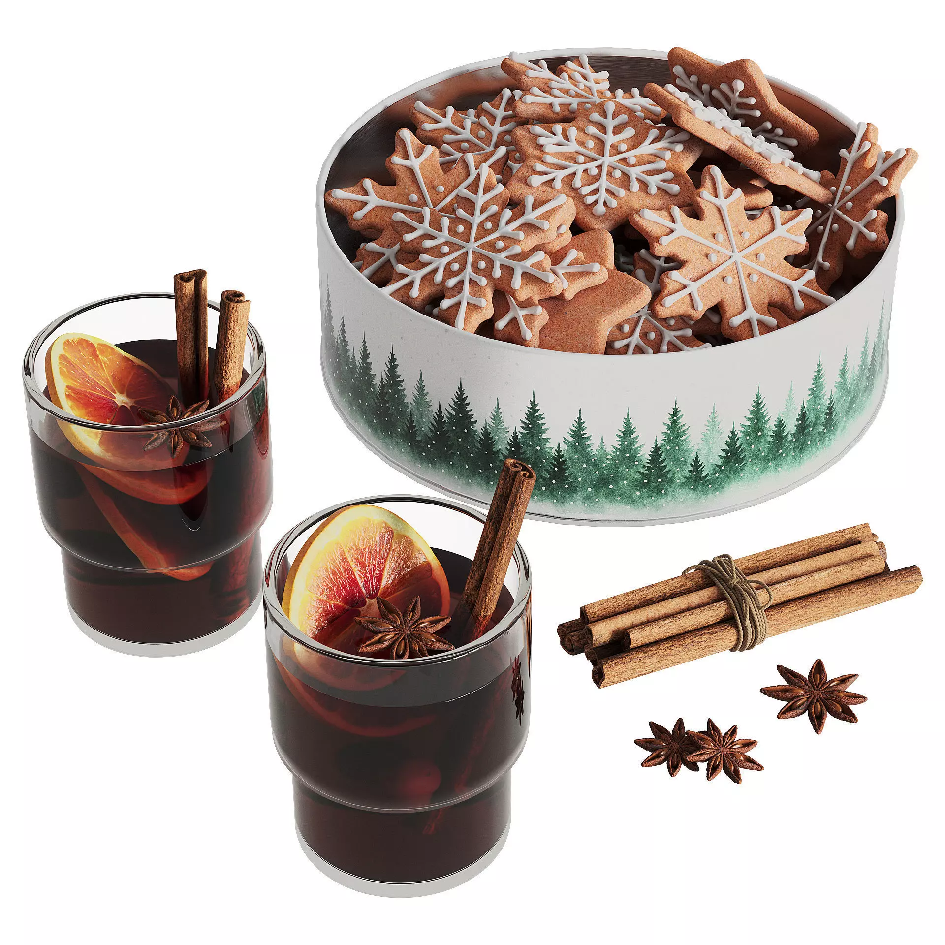 Warm mulled wine with the aroma of orange, cinnamon and star anise creates an atmosphere of comfort and tranquility. Ginger cookies in the shape of snowflakes and stars are tempting to try it. All this together fills the space with a New Year's mood, creating a magical holiday atmosphere where every moment is saturated with the warmth and aroma of winter.