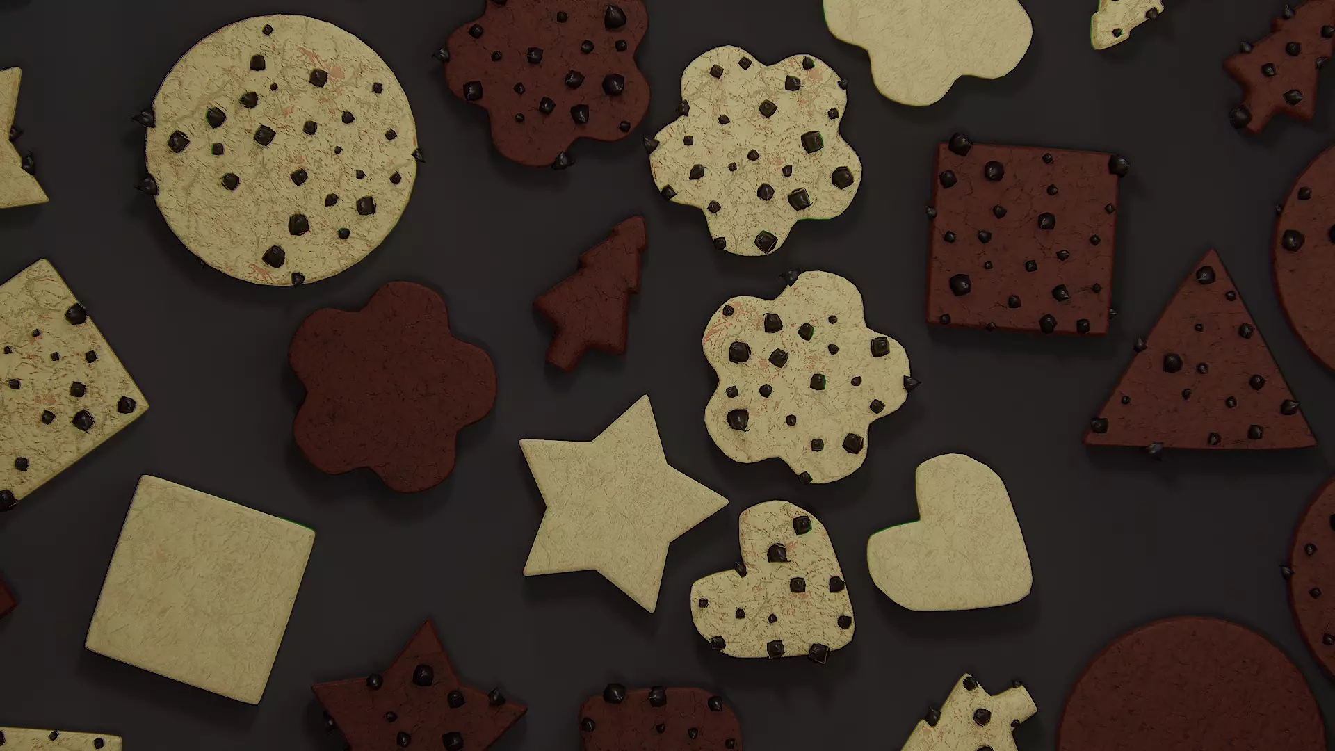 Multiple Shaped Cookies - Vanilla and Chocolate with Choco Chips Low-poly 3D model
