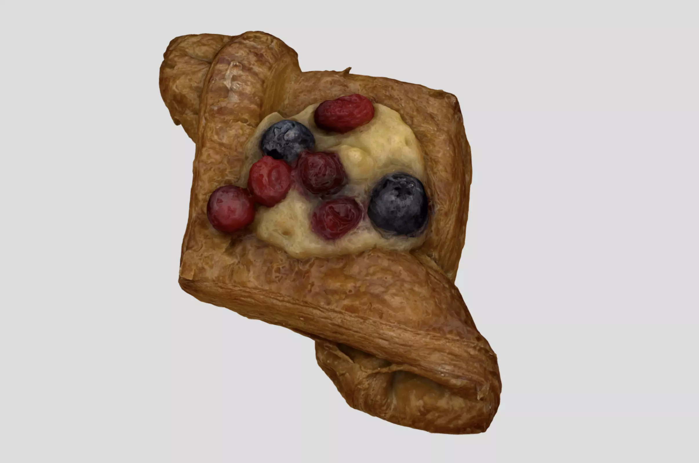 A delicious sweet pastry with berries such as blueberries and cranberries on top with some vanilla custard. A high quality scan, high-poly with HD textures and all the little details as seen in close up pictures.