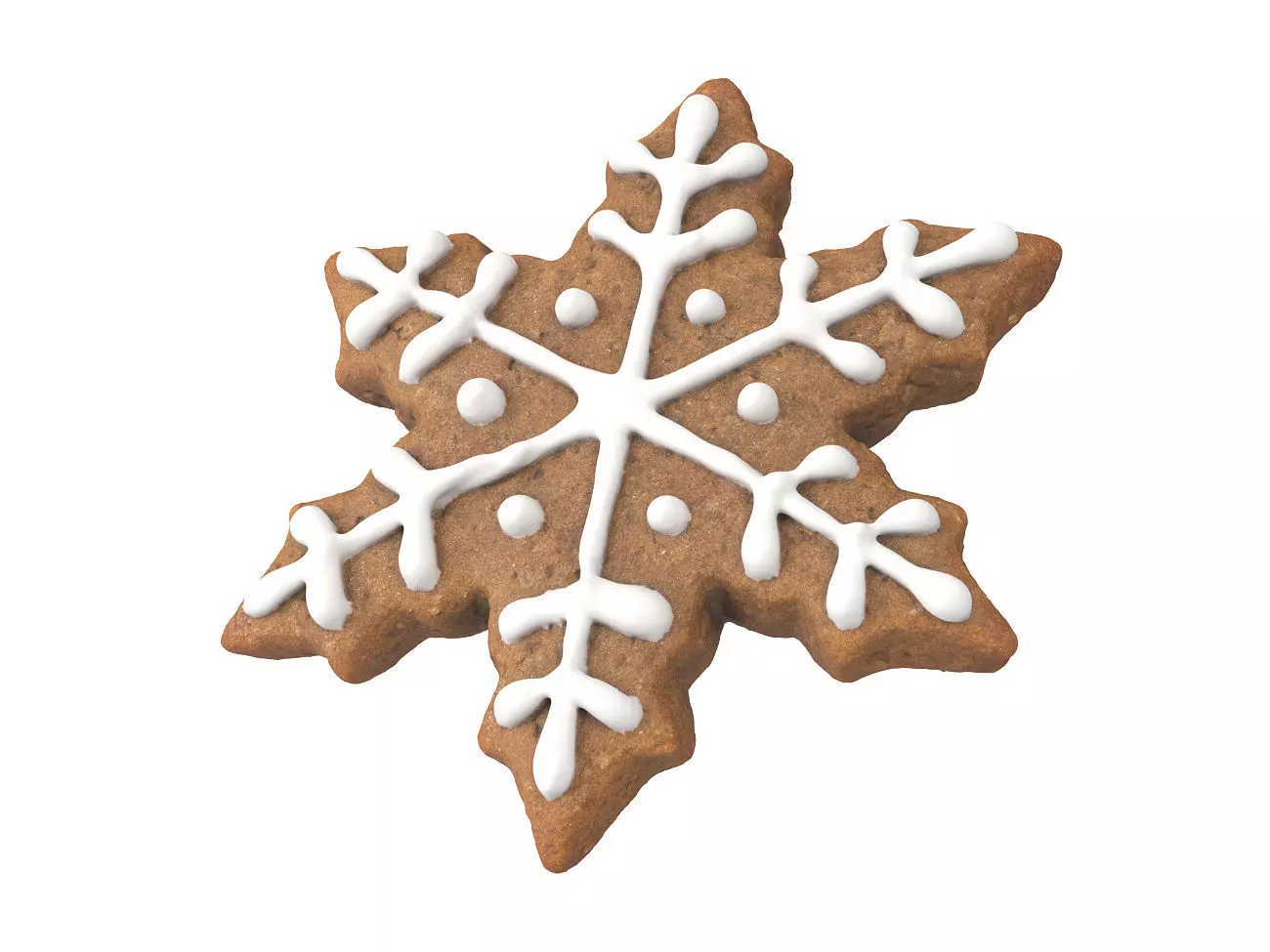 Highly detailed, photorealistic, 3d scanned model of a snowflake gingerbread. 8k textures maps, optimized topology and uv unwrapped.