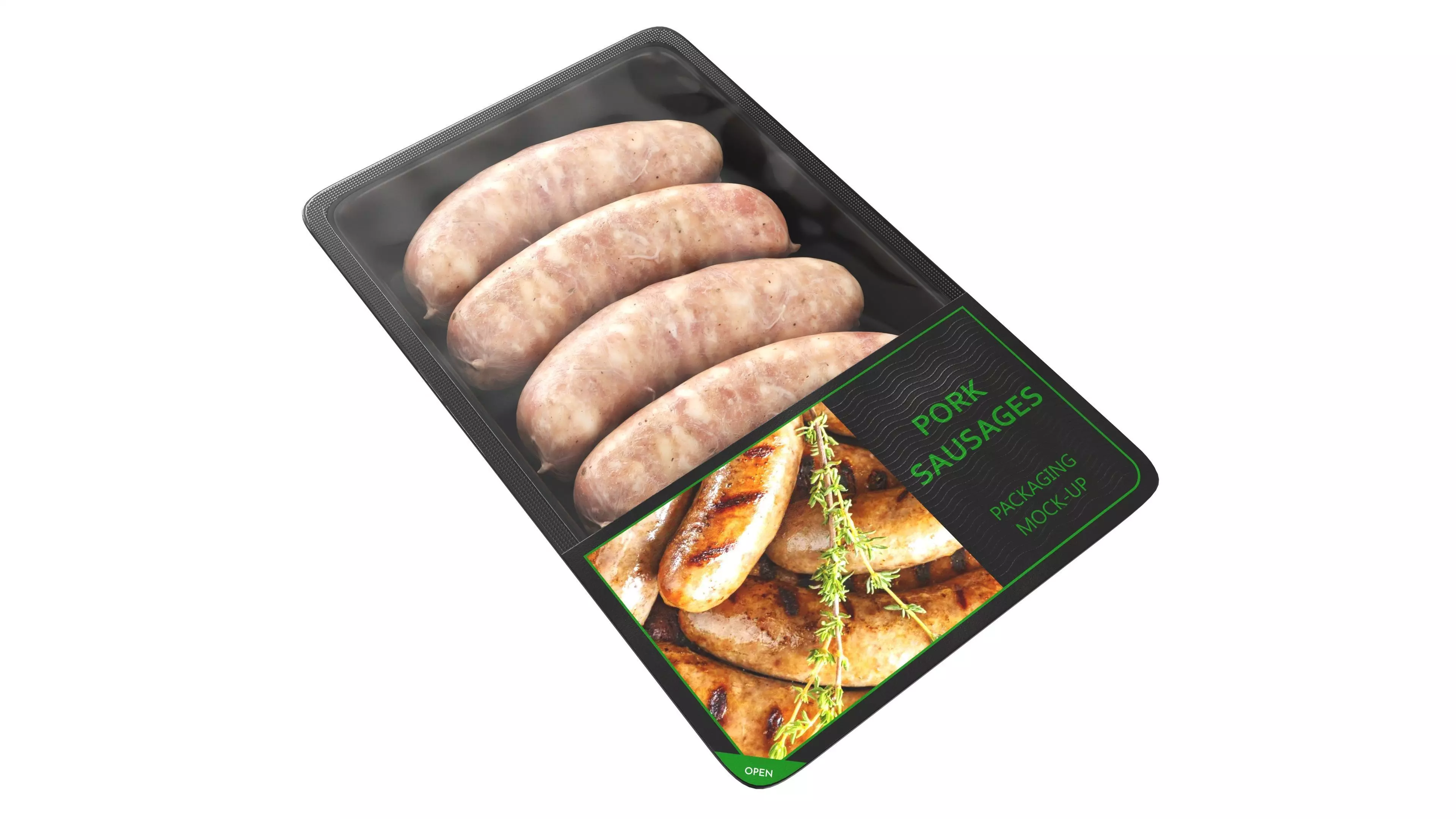 Pork sausages raw in packaging Low-poly 3D model