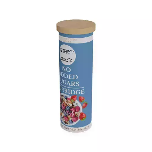 Porridge: This porridge is packaged in a convenient and eco-friendly cardboard tube, perfect for those who are always on the go. The tube features a modern and minimalist design, with a color scheme that reflects the natural ingredients used in this porridge. The label on the tube proudly states Organic and gluten-free and No added sugars. Inside, you'll find individual servings of porridge, each labeled with the flavor and cooking instructions. The tube also includes a small wooden spoon, allowing you to enjoy your porridge wherever you are. Start your day off right with a nourishing and delicious bowl of porridge.