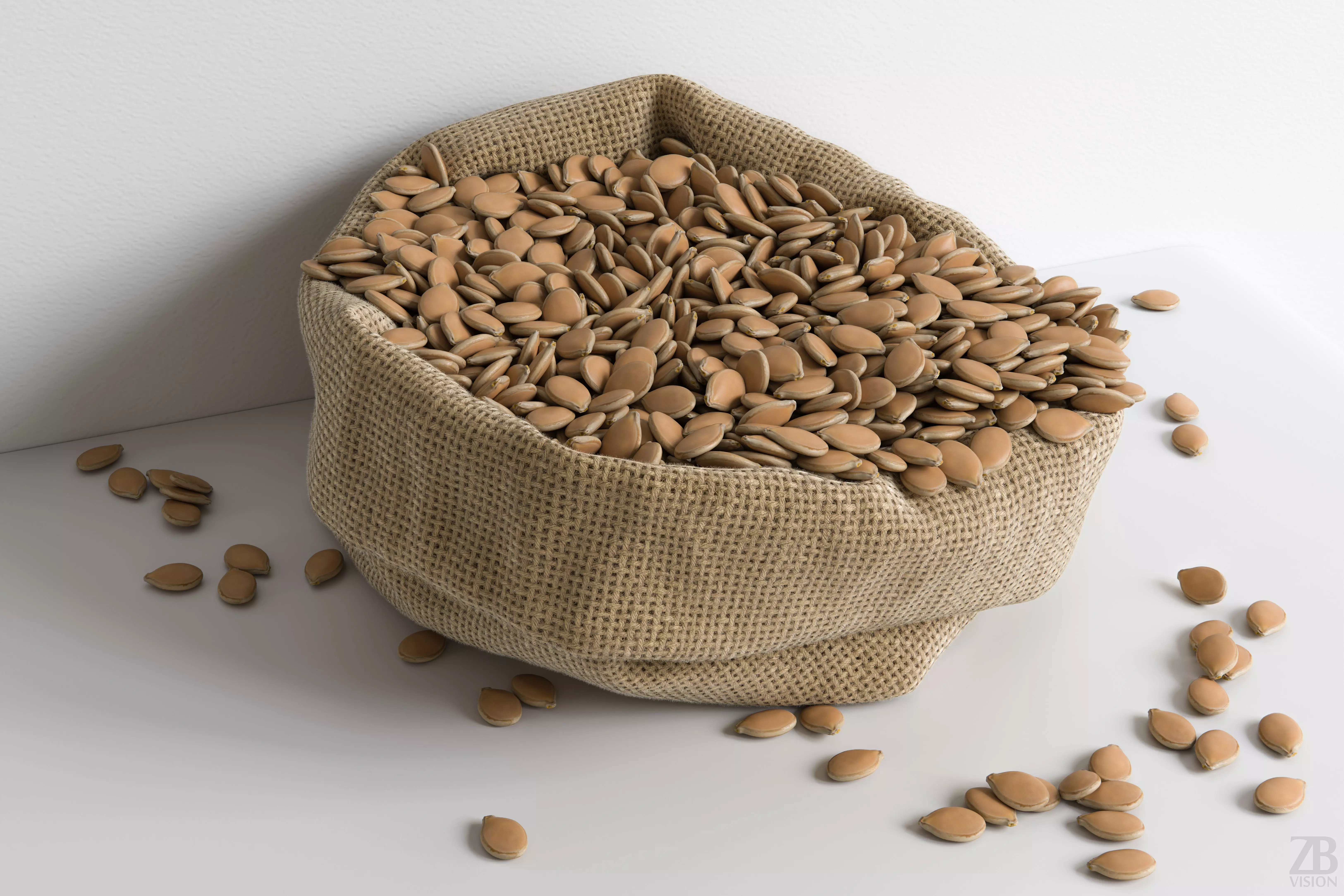 This is a 3d model of a pumpkin seed husk. It was scanned and prepared for photorealistic renderings, close-ups, stills and animation. The pumpkin seed model is ready to be inserted in your scene out of the box.