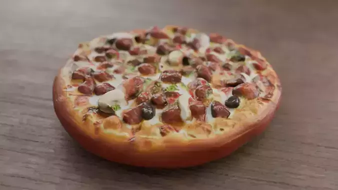 Description:This is a high-quality 3D model of a delicious, realistic pizza, perfect for game development, 3D renders, and animation projects. The pizza features detailed toppings including cheese, sausage, mushrooms, olives, and peppers, giving it an appetizing and lifelike appearance.