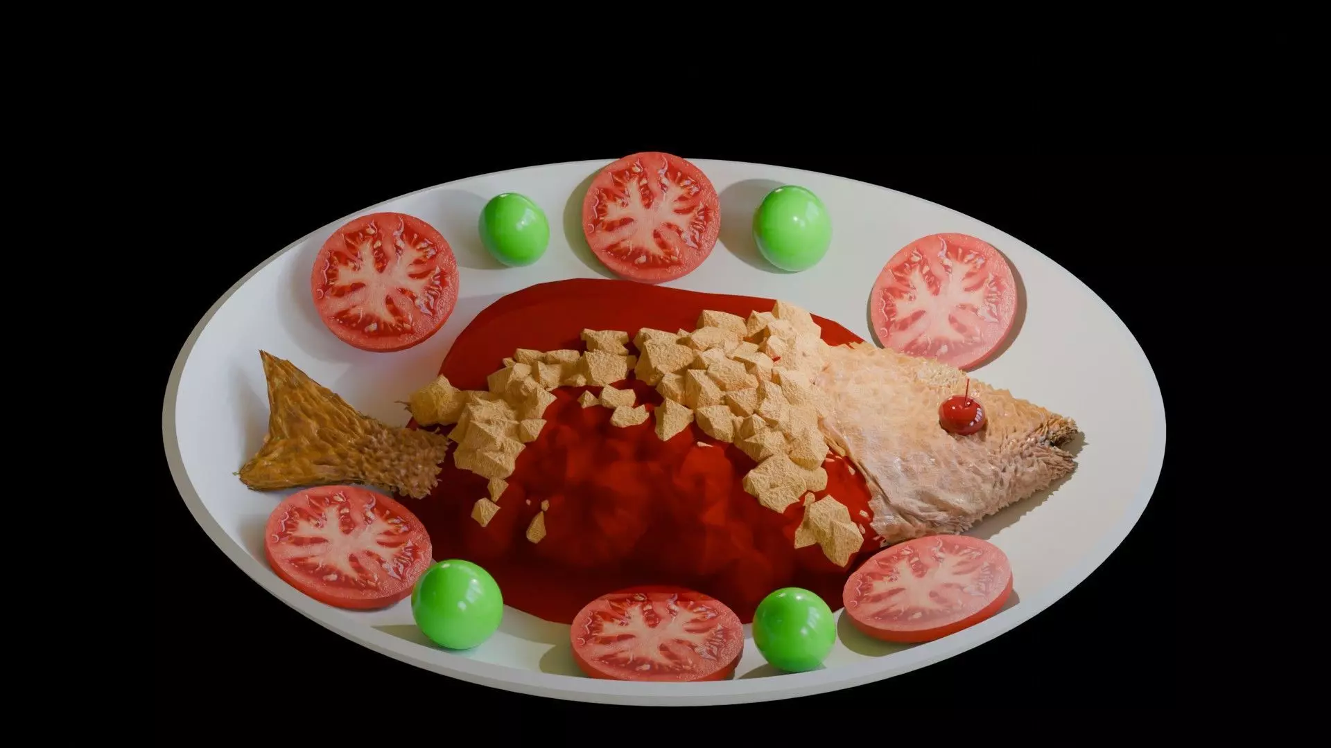 Realistic Chrysanthemum fish with tomato sauce 3D model