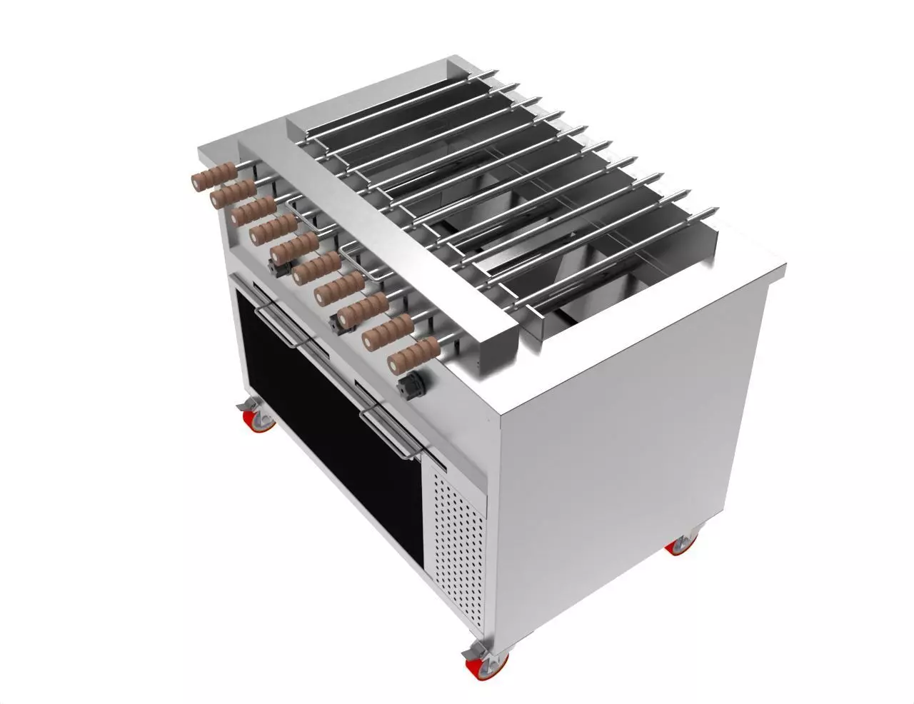 ROASTER Charcoal Grill For 10 Skewers And Storage Cabinet 110x61x97cm Roaster Charcoal grill for 10 skewers and storage cabinet.Made of AISI 304 stainless steel