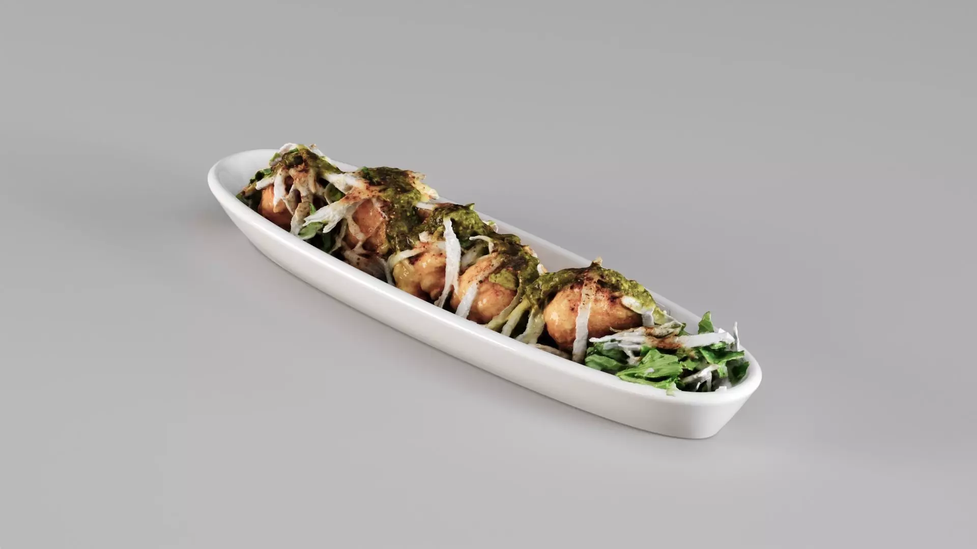 High-quality 3D model of a Takoyaki appetizer, created using 3D scanning technology for ultra-realistic surface details and textures.Each element — from the crispy dough balls to the sauce and shredded garnish — is accurately captured for lifelike rendering.Perfect for CG visualizations, restaurant advertising, food design, AR/VR menus, and product rendering.Ideal for creative or professional projects requiring realistic food assets.