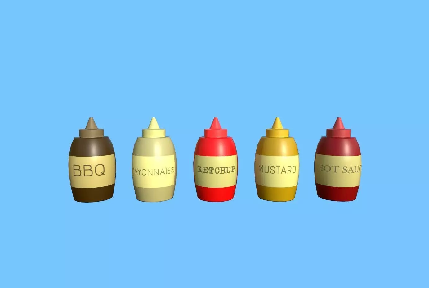 Sauce group of bottles Low-poly 3D model