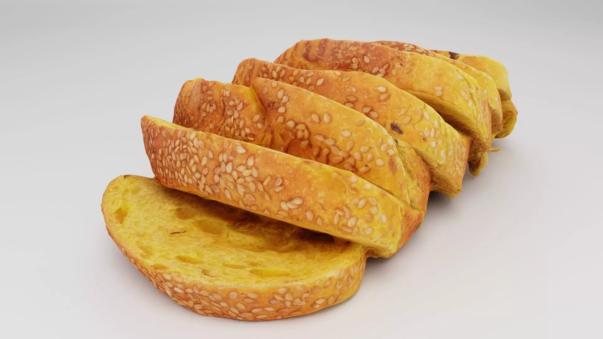 Sliced or cut Scandinavian bread with seeds raisins and sesameThis is an optimized 3D model with baked normal and other maps from 3D scan. Perfect for GPU rendering, use in Real-time engines, games etc.The resolution for each map is 4096x4096. You may find a source 3D scan model in our products list.Please check our other products and make sure you didn't miss collections and assets with similar type of objects to get better price offer with buying them as a collection.