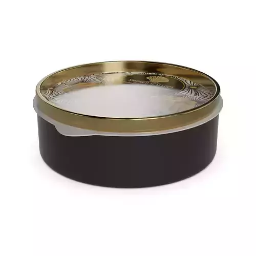 Smoked Scallops: Indulge in the delicate flavor and buttery texture of our smoked scallops. Each scallop is carefully arranged in a round, transparent container, allowing you to appreciate their natural beauty. The packaging is adorned with a golden label, featuring an intricate pattern and the product name in elegant font.