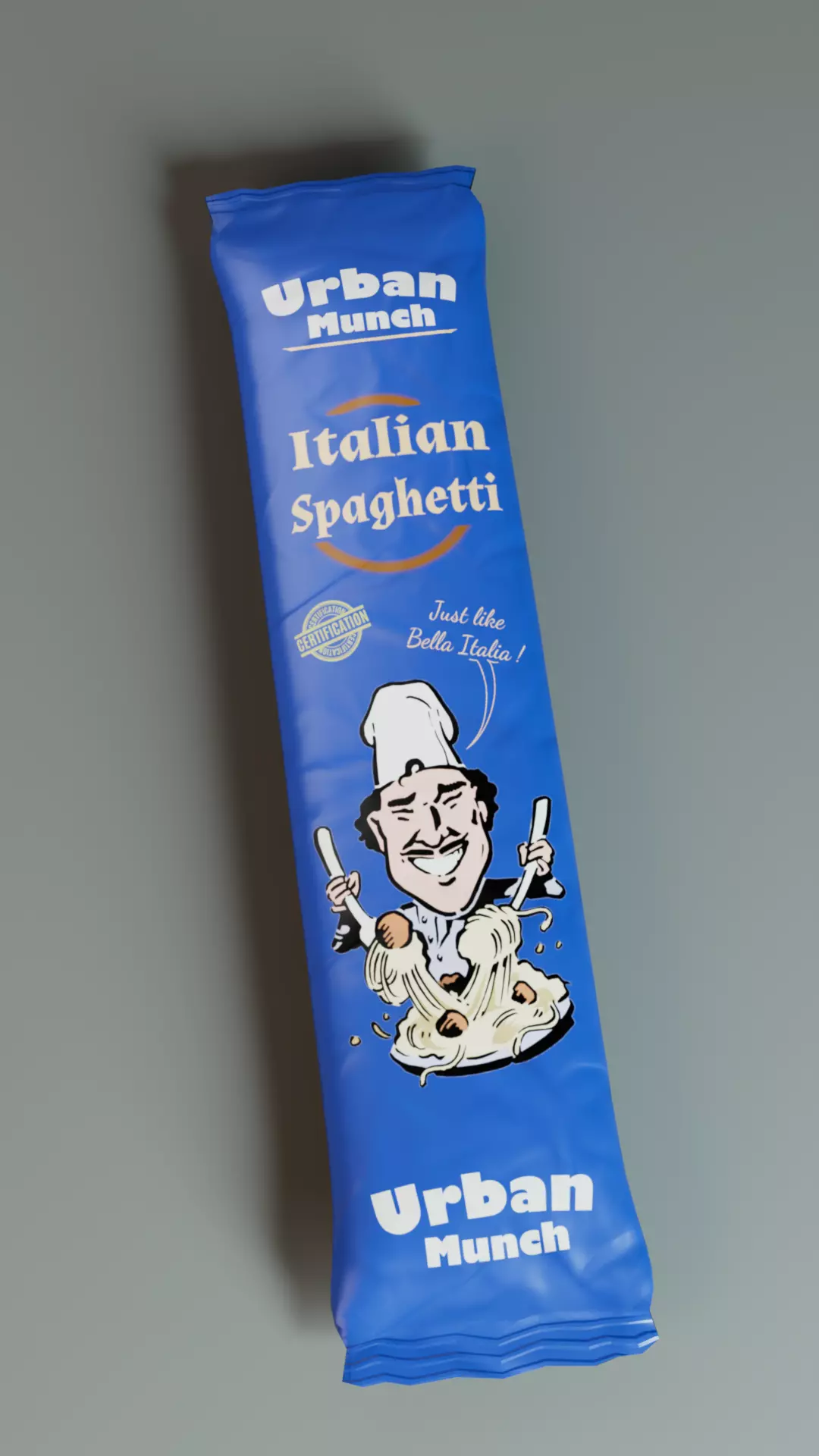 This model includes the pasta pacakge mesh as seen, as well as all textures needed for PBR.
