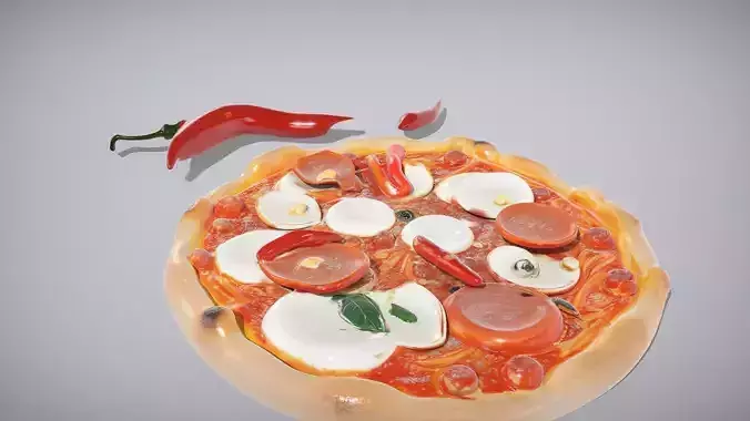 This model represents a delicious Pizza Diavola, featuring a thin crust, rich tomato sauce, and spicy salami. Each ingredient is meticulously crafted for realism, making it perfect for culinary presentations or restaurant simulations. Each model has 3 levels of detail with QUAD polygons: