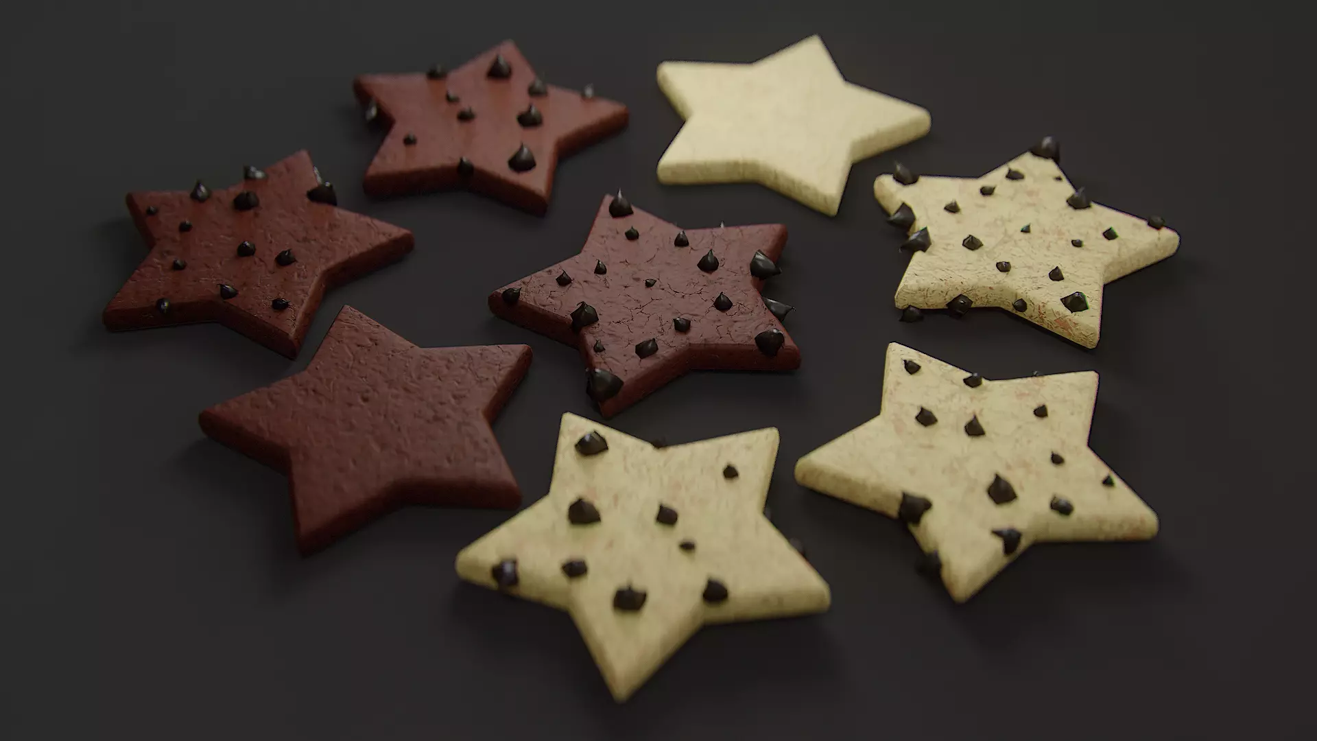 These are STAR-shaped cookies only from a much bigger collection that consists of other 6 shapes that I've worked on recently, along with their PBR texture.All assets have been optimized with care, eliminating unnecessary edges and are made to be game-ready assets!