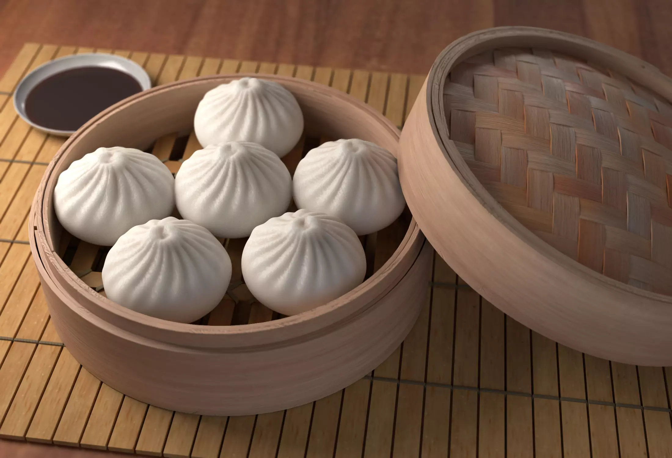 Textures: 4096x4096 px hi-resolution for baozi,bamboo_steamer,bamboo_mat 1048x1048 px for dish.