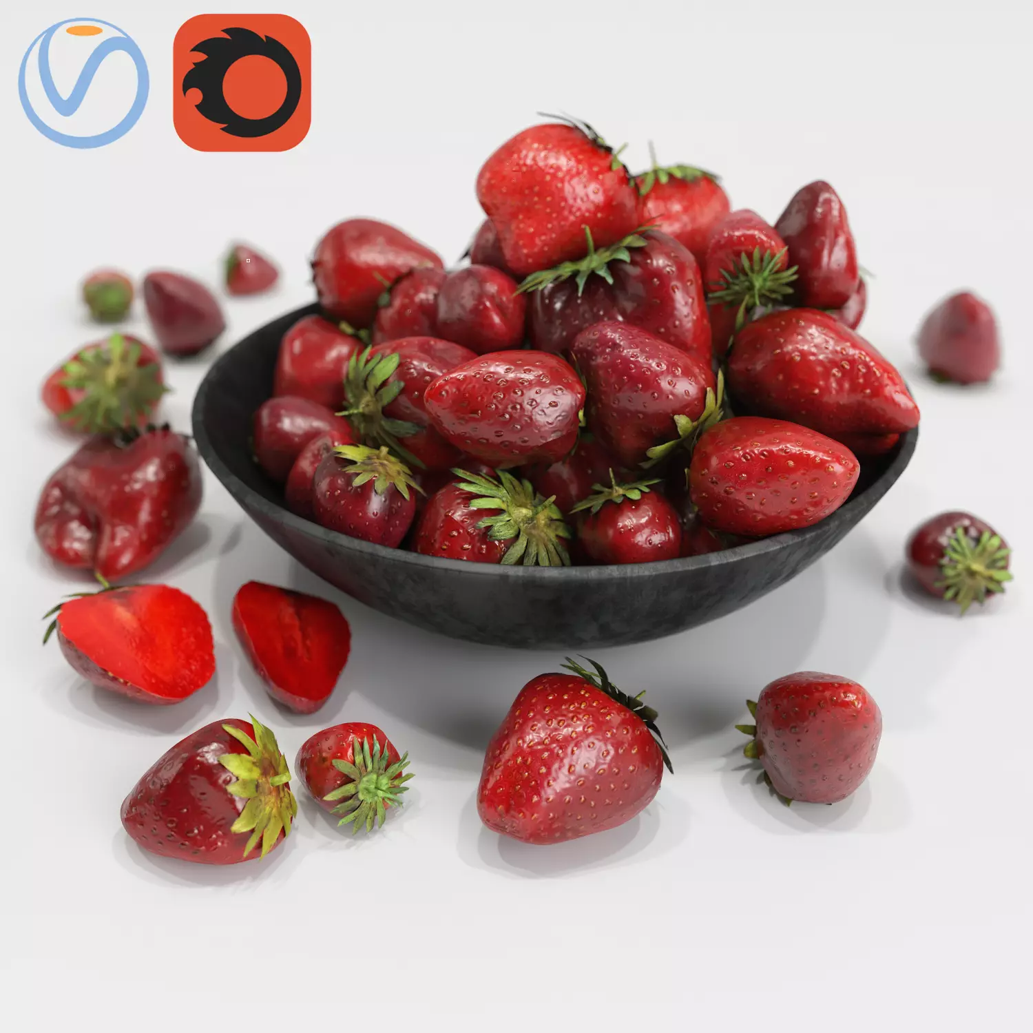 There are 3 groups in the scene: a small plate, a large plate and scattered berries