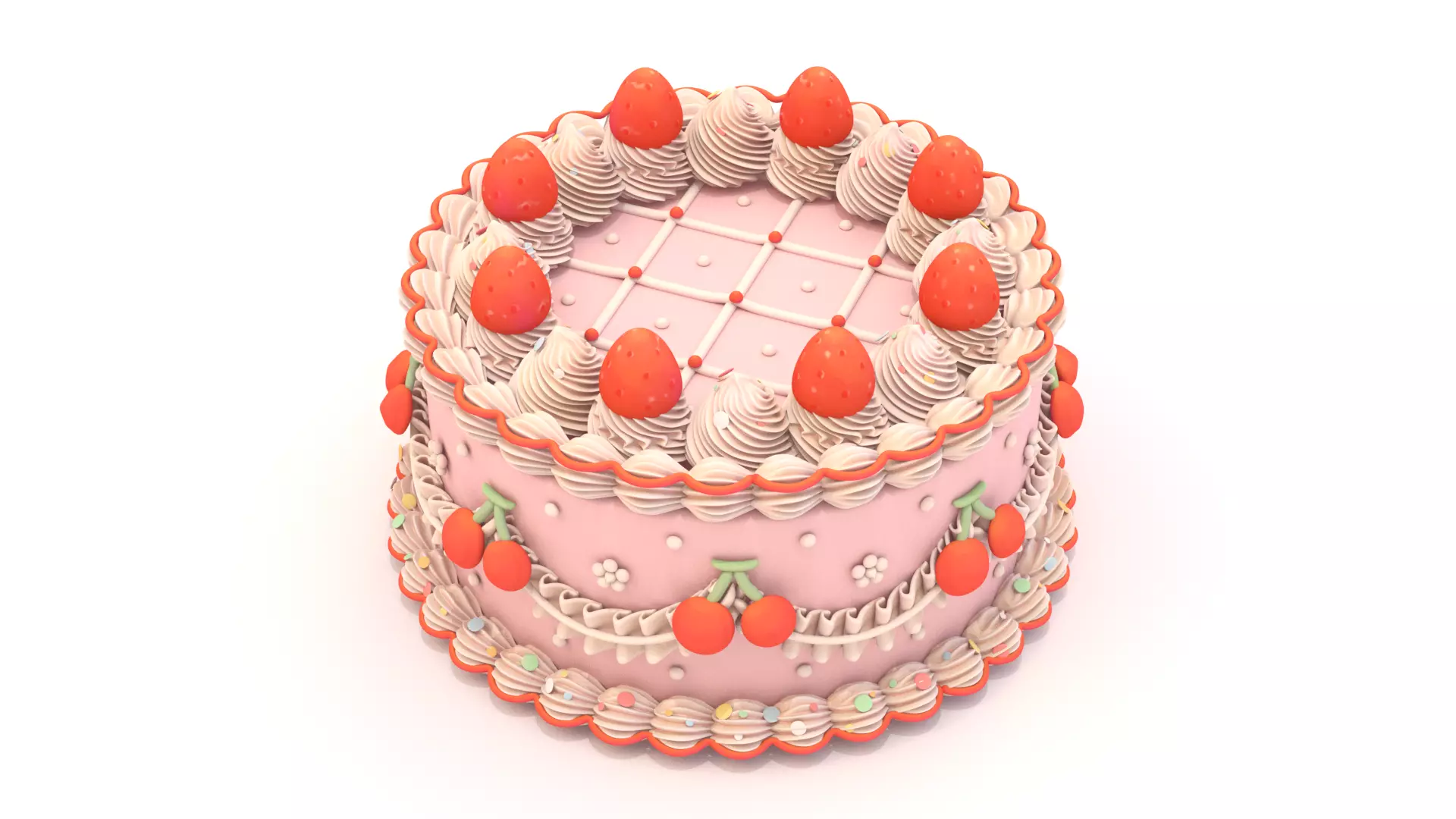 Strawberry Cherry Cake - Stylized Strawberry Cherry Whole Cake