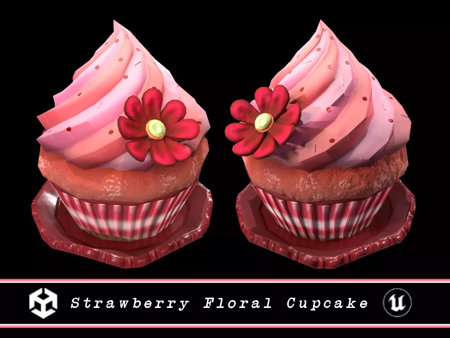 Strawberry Floral Cupcake 3D Model. This model contains the Strawberry Floral Cupcake itself