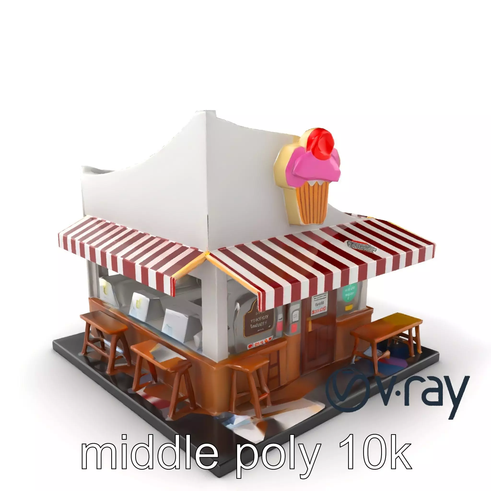 Each model has 3 levels of detail: low-poly, middle-poly, and high-poly, which allows for the use of this model in production rendering (such as 3ds Max, Maya, Cinema 4D, Blender, Vray/Corona/Cycles and all others), game engines (Unity and Unreal compatible), and interactive presentations, providing a choice of detail based on the LOD System principle. This model is perfect for small-town or food-themed designs, cozy urban environments, and playful stylized scenes.