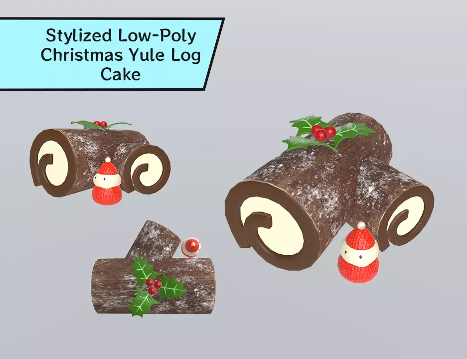 Add a warm and charming holiday touch to your scenes with this stylized low-poly Christmas Yule Log Cake. Featuring a creamy spiral roll cake, snowy chocolate texture, festive holly leaves, red berries, and an adorable mini Santa strawberry, this model is perfect for Christmas-themed environments, dessert displays, cozy interior scenes, or stylized food collections.Optimized for performance and compatibility, it fits seamlessly into games, animations, mobile projects, and VR/AR experiences.