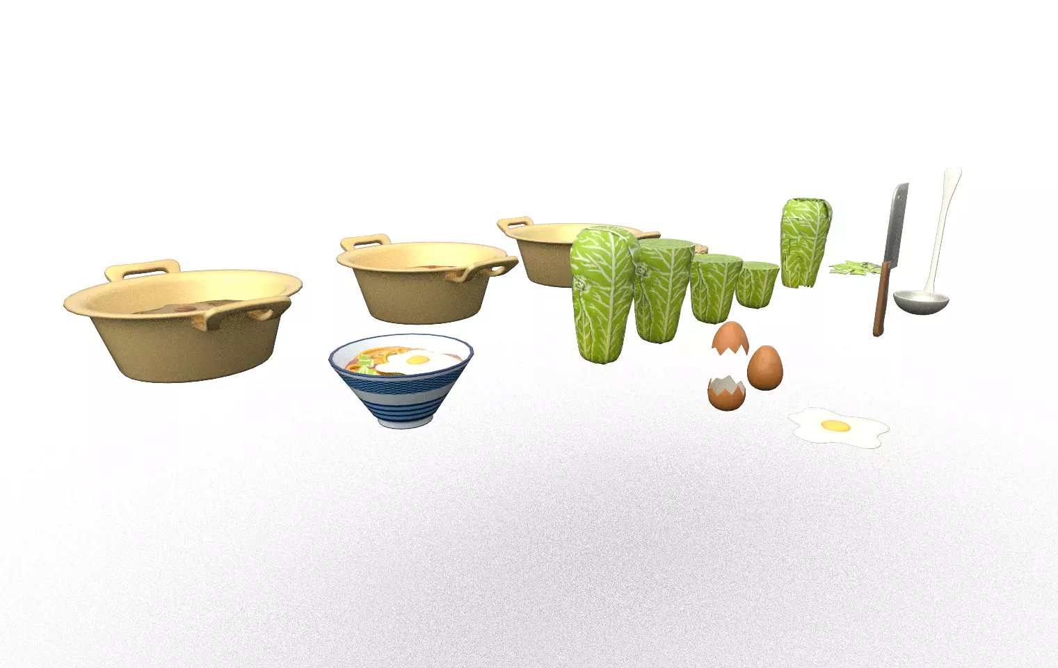 A comprehensive stylized food prop kit featuring noodles and ingredients. This high-value asset pack is designed for cooking, simulation, or casual games, offering multiple stages of the food lifecycle.