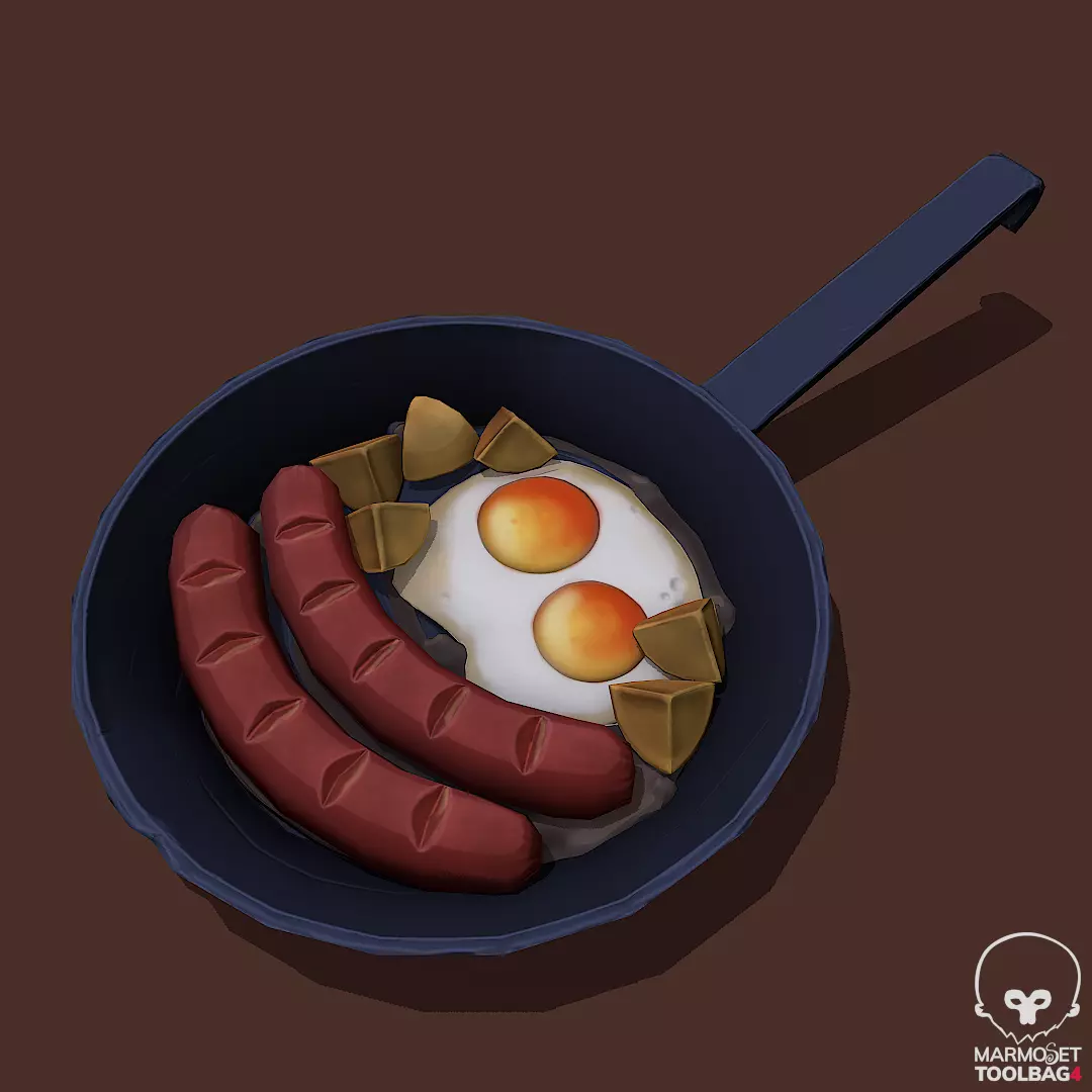 Stylized Sausage Pan Pbr Low-poly 3D model