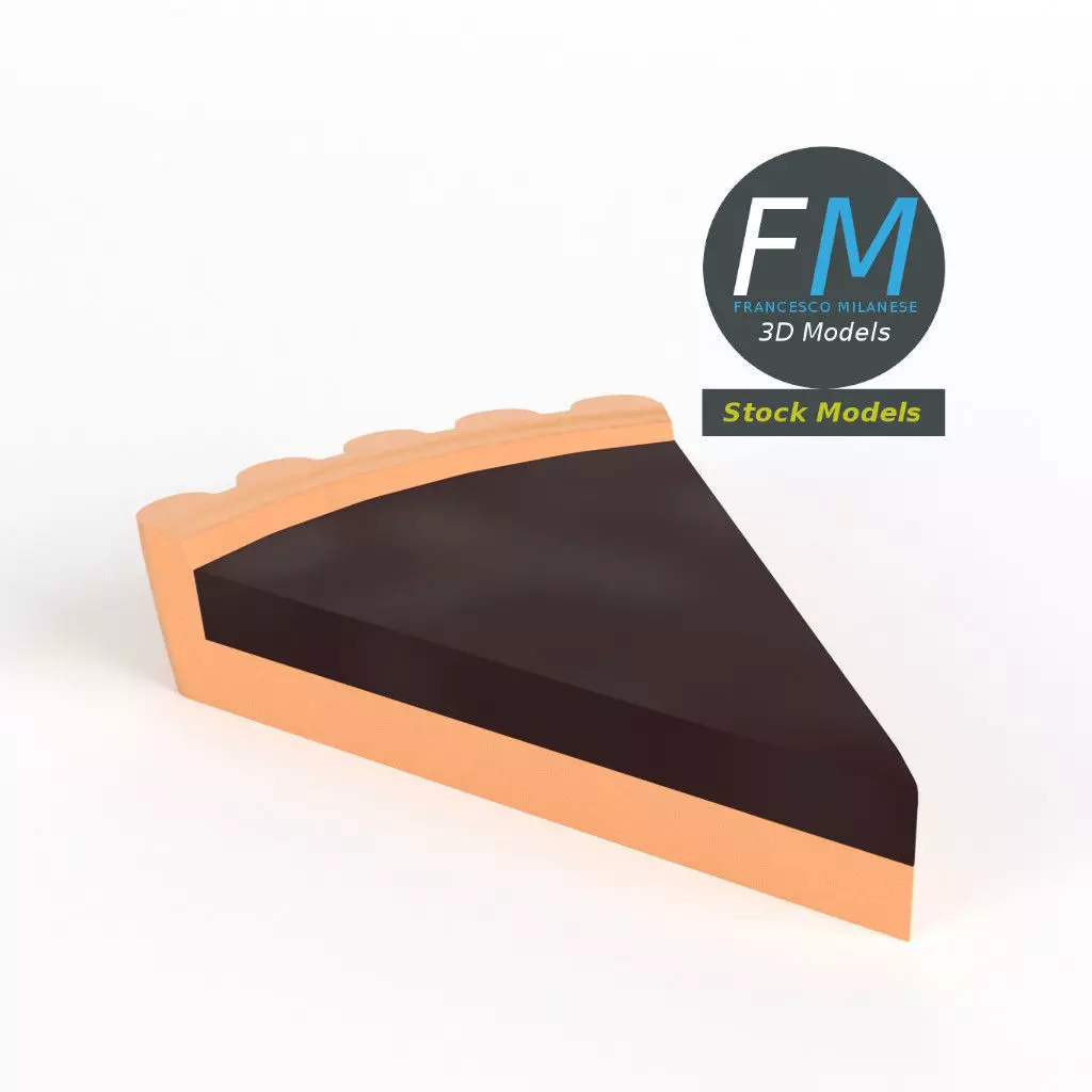 Stylized slice of chocolate tart pie 3D Model. Production-ready 3D Model, with PBR materials, textures, non overlapping UV Layout map provided in the package.