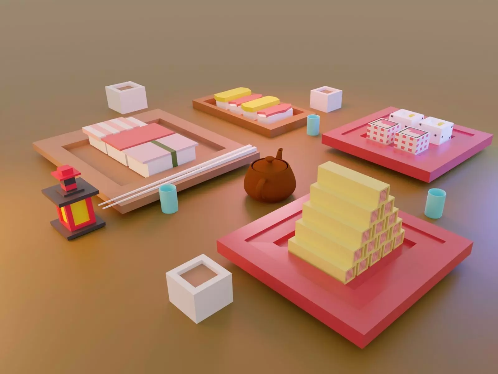 The model has material settings that define how surfaces look (color, shine, transparency, etc.).