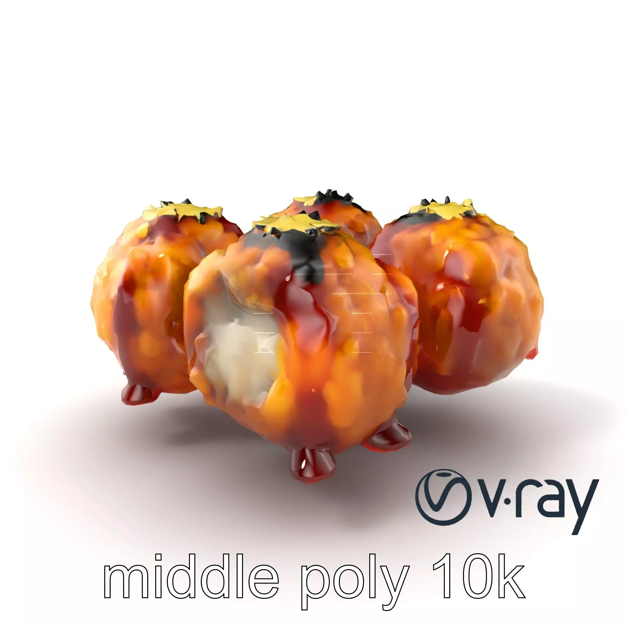 This Takoyaki model is ideal for culinary simulations, virtual reality cooking experiences, and detailed food presentations in advertising. The model's textures are PBR, Diffuse, NormalMap, and reflection/roughness/metallic, suitable for any modern rendering engine. All models are accurately unwrapped and have no overlapping UVs.