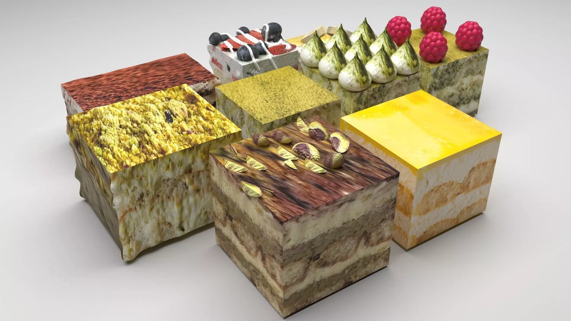 1 Tiramisu - $2 Berry Tiramisu - $2 3 Banana Tiramisu - $2 4 Pistamisu - $2 5 Matcha Tiramisus Set - $2 6 Dubai Tiramisu - $2 7 Lemon Tiramisu - $2 You save - $14 Features: -Each model is accurately sized to match the real object. -Clean and optimized topology is used for maximum polygon efficiency. -Each model is fully sub-dividable to allow Turbosmooth Iterations to increase mesh smoothness if needed. -All textures and materials are tailored and applied for high quality render results. -All objects have fully unwrapped UVs. -No extra plugins are needed for this model. -Lights and cameras are included in the scenes.