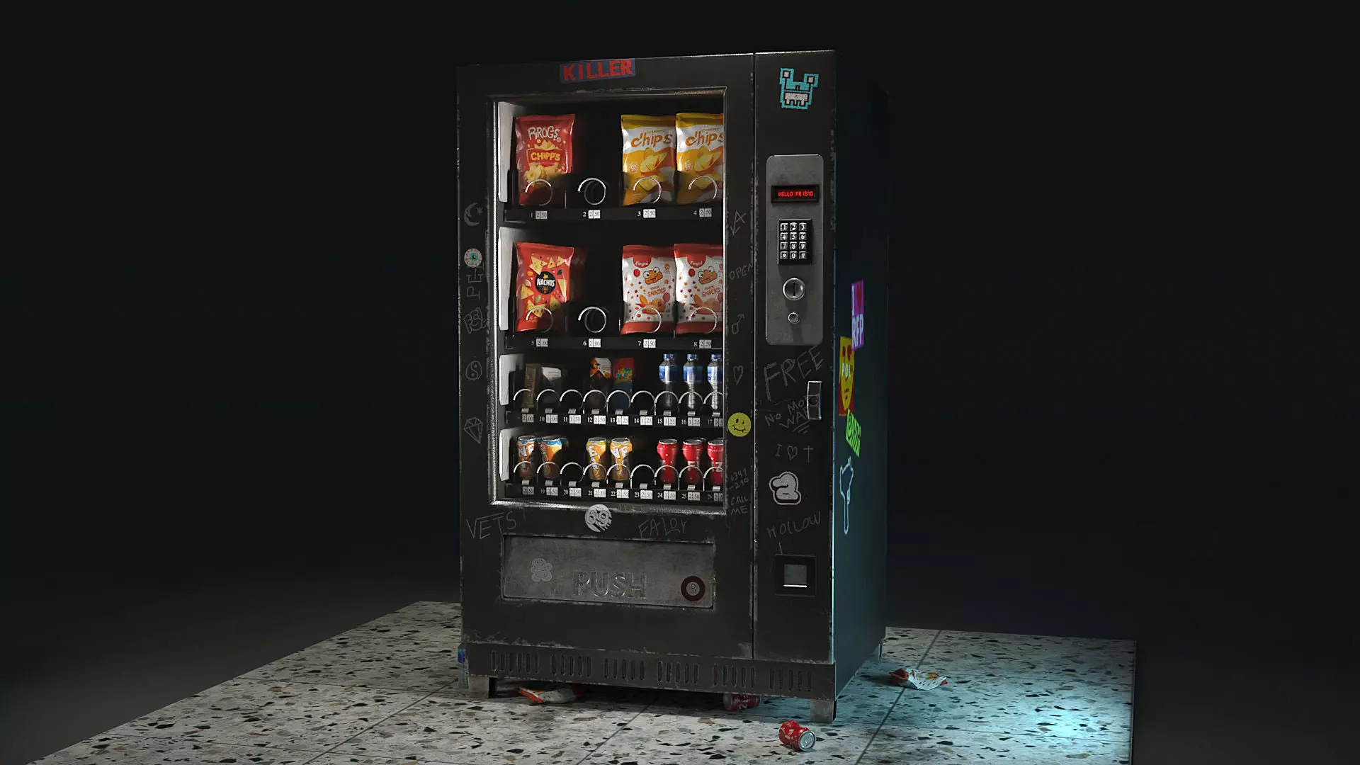 Materials: The textures are PBR maps in 4096 x 4096 px (base color, normal map, roughness, metallic, ambient occlusion, emission light and opacity and in addition specular map. Its is included vray materials in the native file vending_machine(vray).max, The blender file use materials created with PBR textures. The standard 3ds max use a standard material with the PBR textures. Each material and texture is named . The brands of the snacks were made with AI.