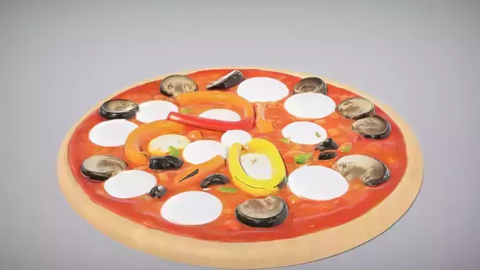 This model represents a delicious vegetarian pizza, showcasing a golden crust and an array of colorful toppings. Each ingredient is meticulously crafted to reflect its real-life counterpart, making it perfect for culinary visualizations or food-related projects. Each model has 3 levels of detail with QUAD polygons: