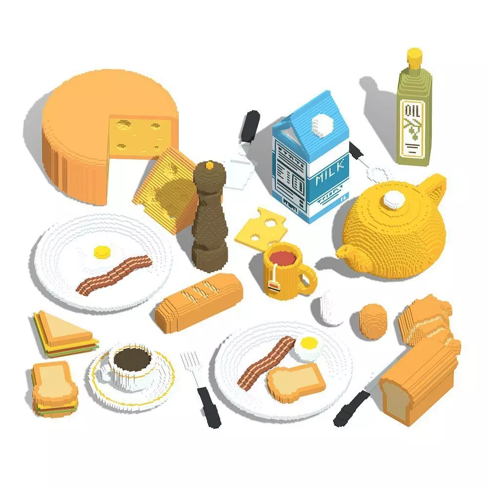 Voxel Voxel Breakfast Pack 3D models created in MagicaVoxel Editor. They include 26 items. You can use this pack in games easily because the number of polygons per element is very low with unwrapped texture, This pack Include: