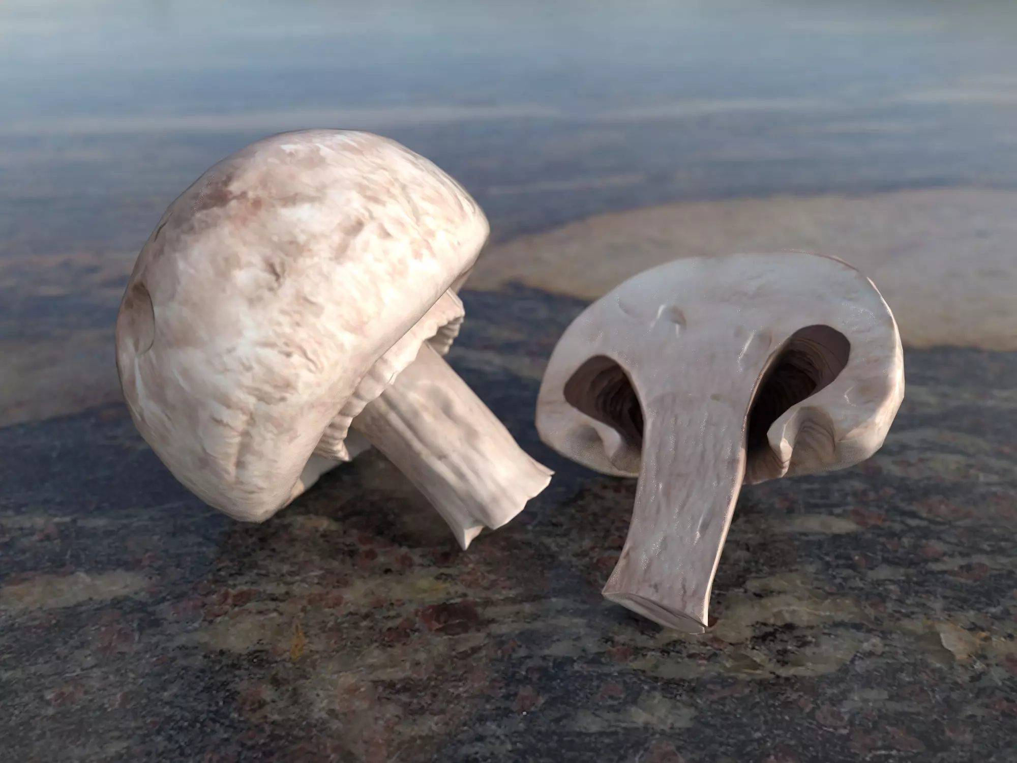 Button mushrooms lowpoly 3D model. Real-time ready, multiple import formats