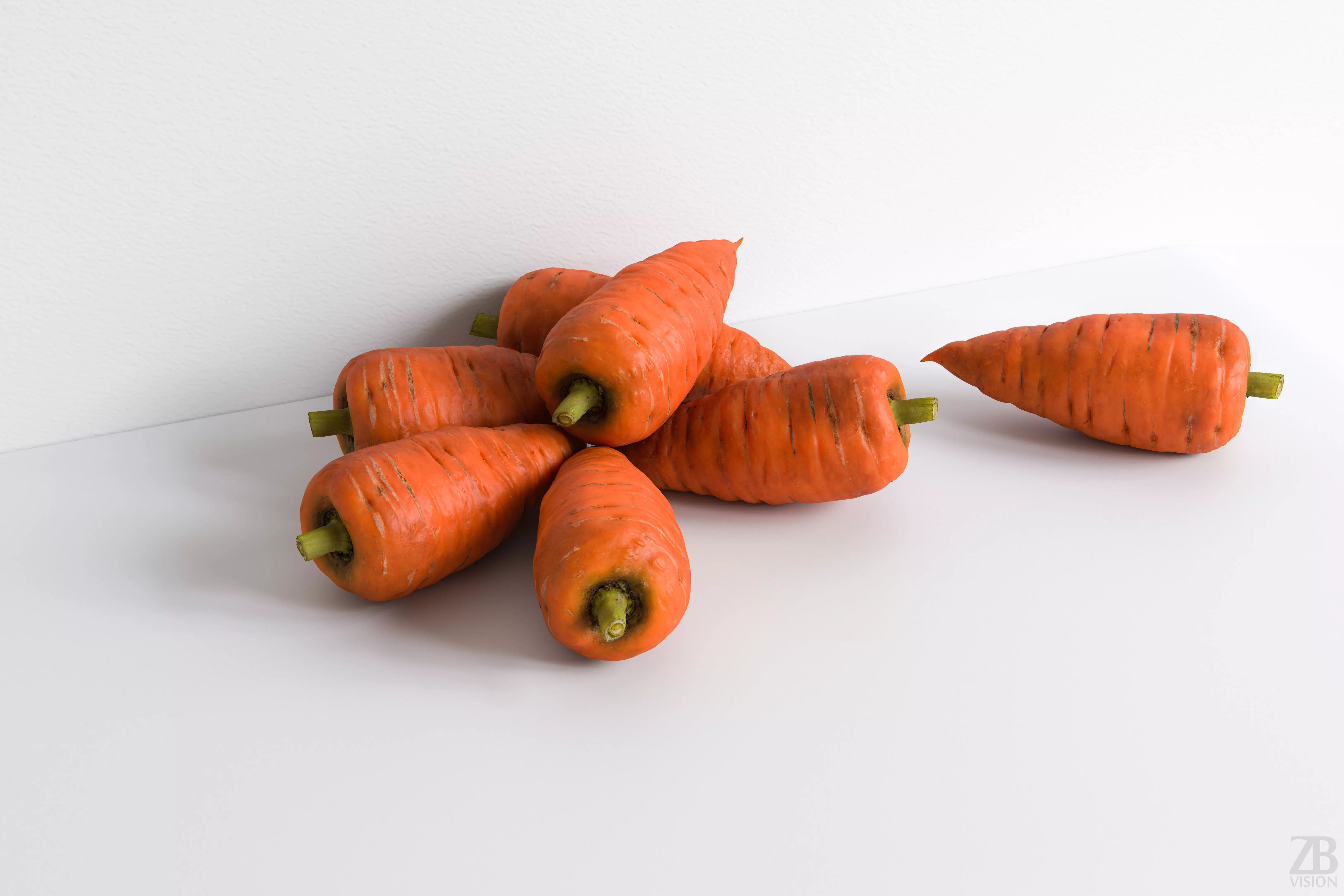 This is a 3D model of a carrot. It was scanned and prepared for photorealistic renderings, close-ups, stills, and animation. The carrot model is ready to be inserted into your scene out of the box.